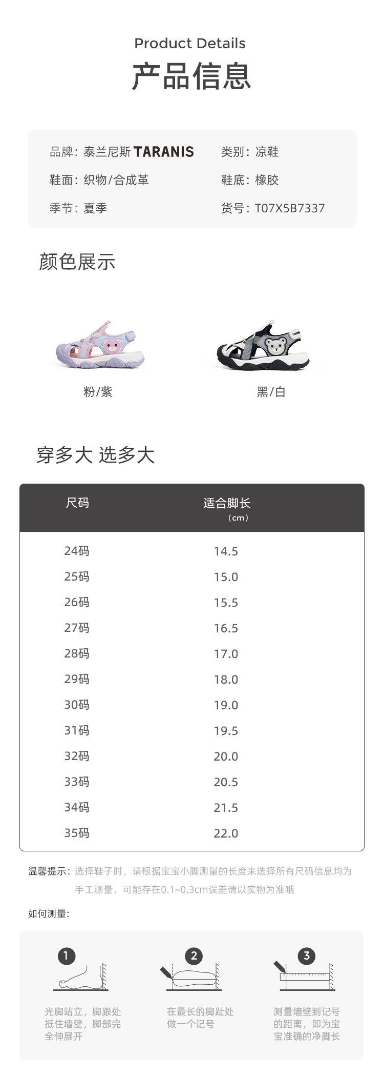 泰兰尼斯夏季小中童舒适百搭溯溪鞋凉鞋T07X5B7337