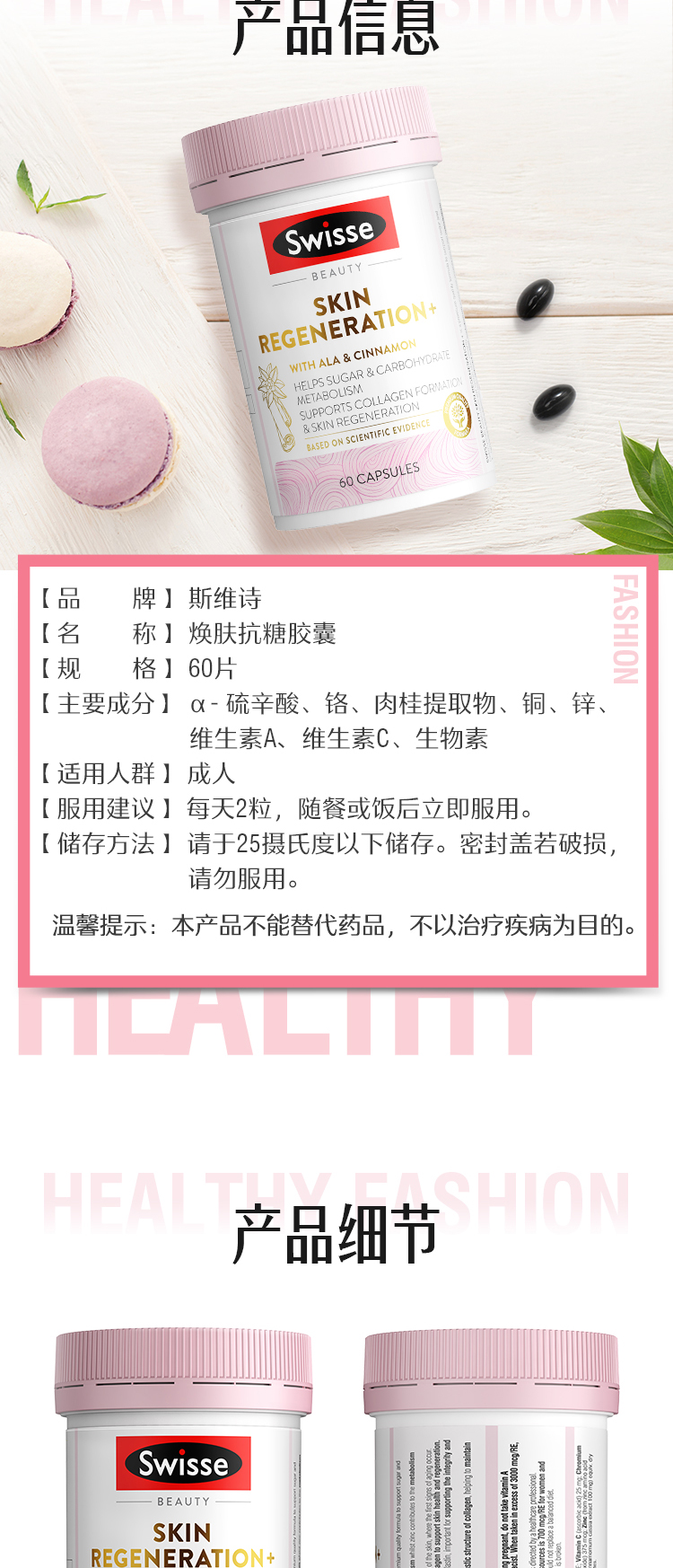 【保税仓】Swisse 金装焕肤抗糖片 60粒