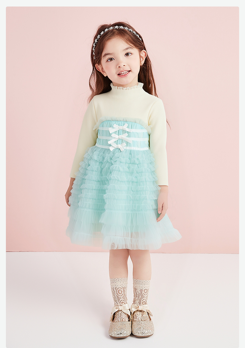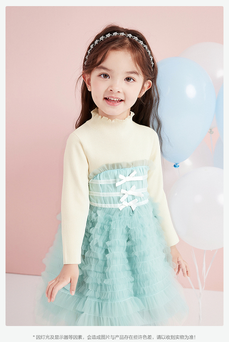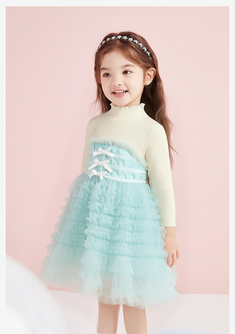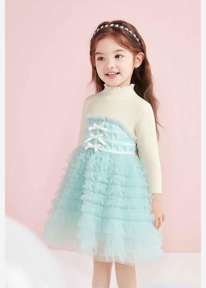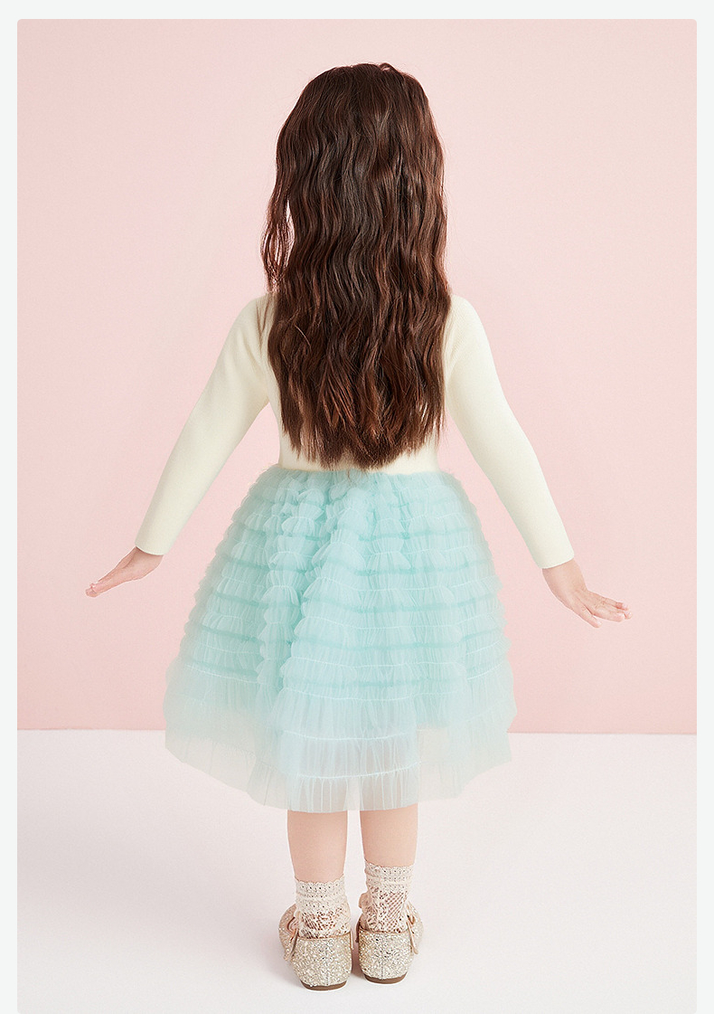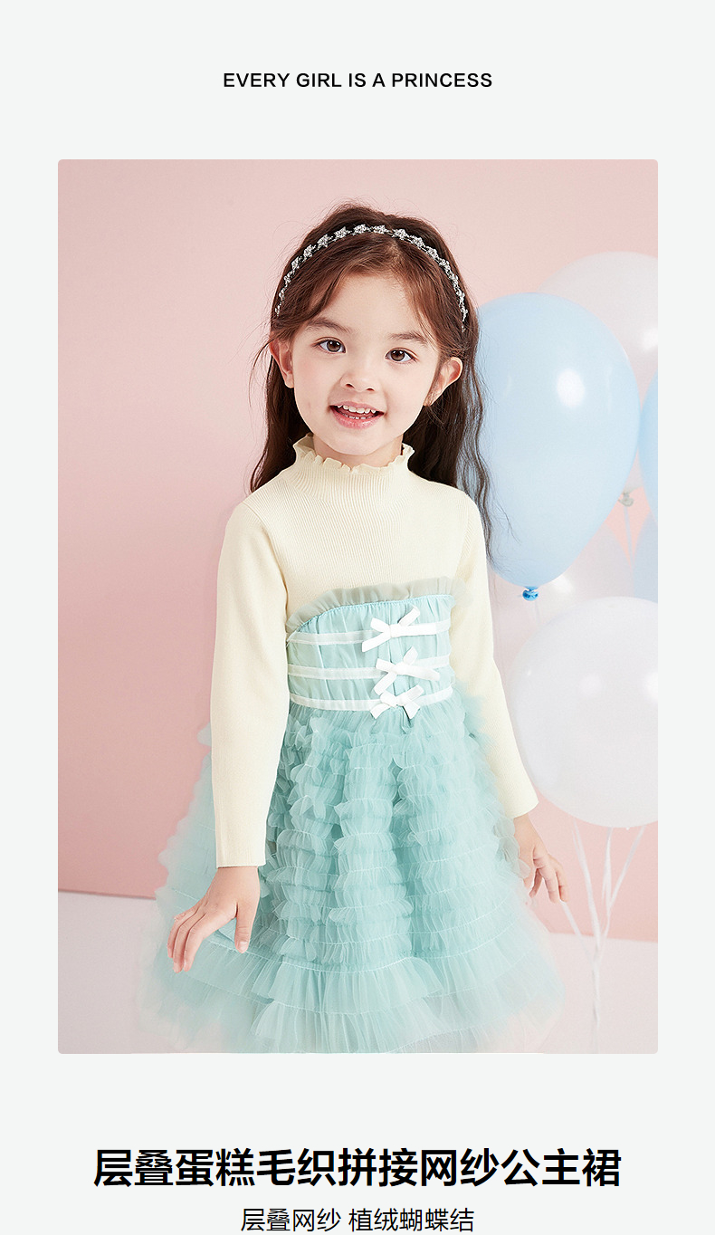 笛莎Deesha 童装女童连衣裙2025冬新款女童层叠蛋糕毛织拼接网纱公主裙