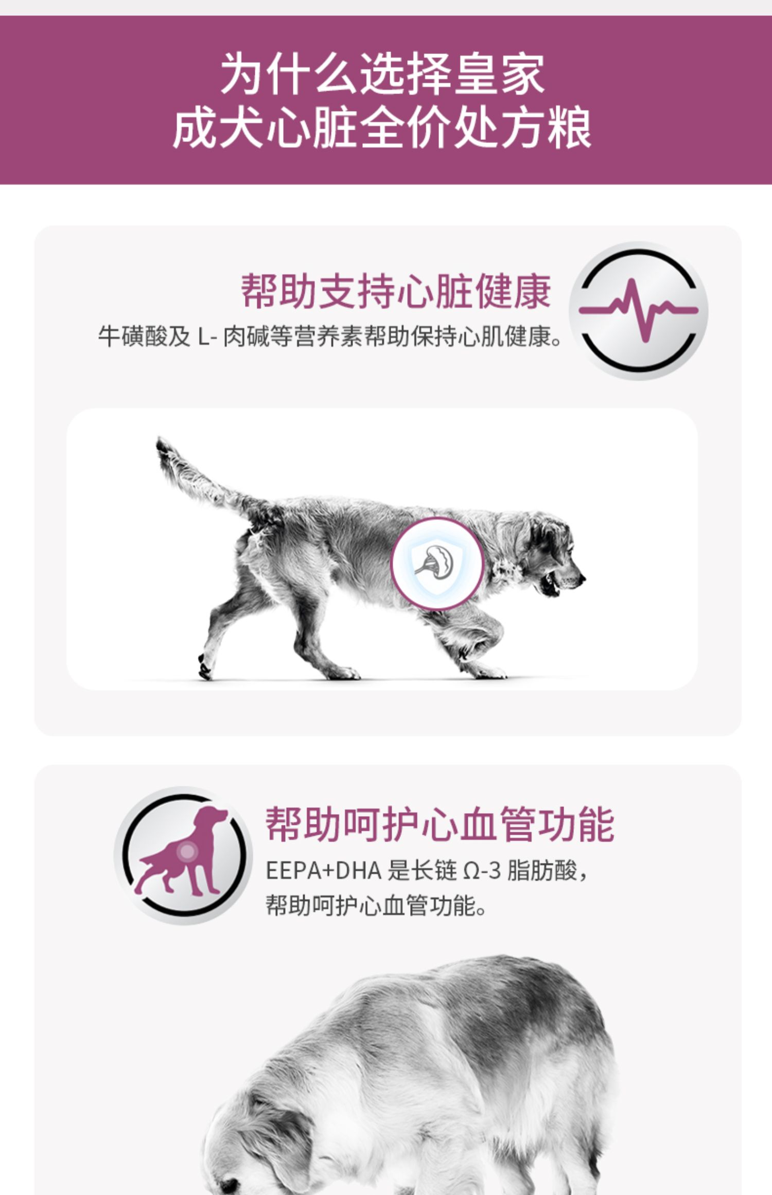 皇家狗粮成犬心脏处方粮EC26中老年调理犬主粮2KG