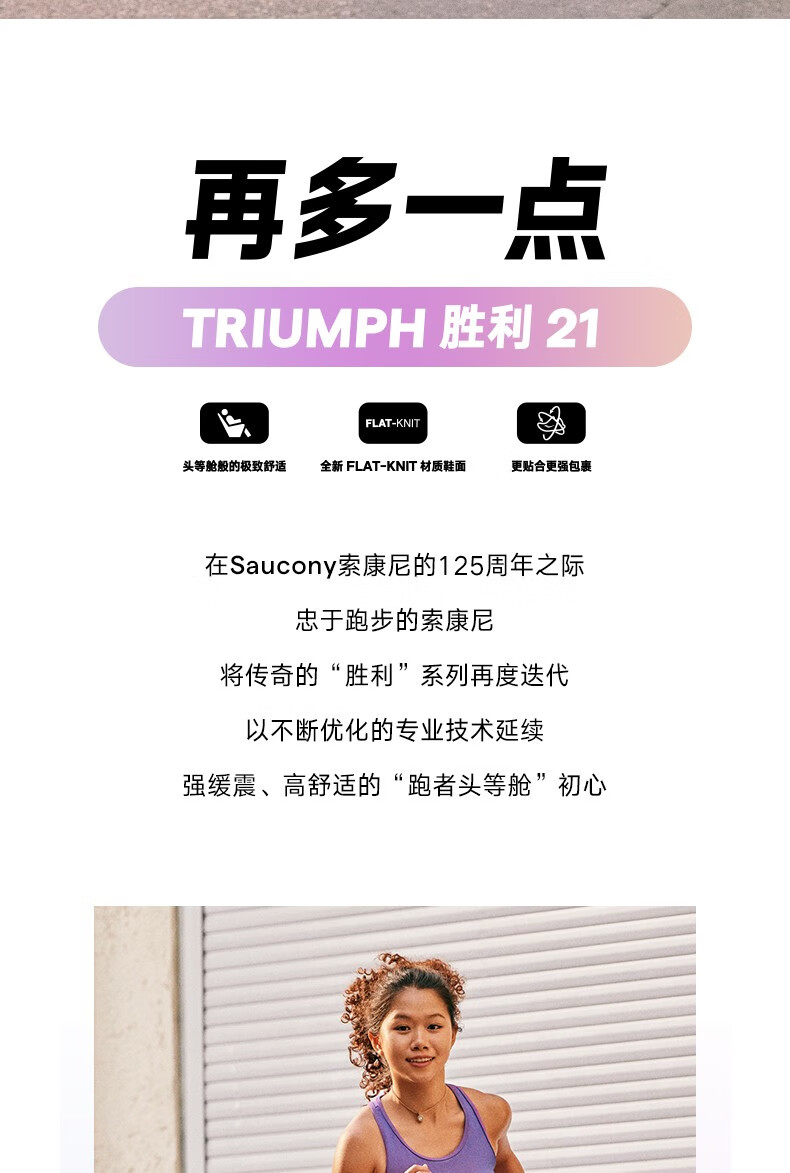 Saucony索康尼夏季新款TRIUMPH胜利21女款跑步鞋减震运动鞋透气女跑鞋