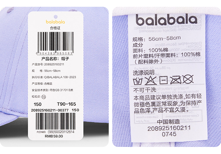 巴拉巴拉儿童棒球帽夏季新款男女童帽子全棉舒适遮阳时尚运动休闲