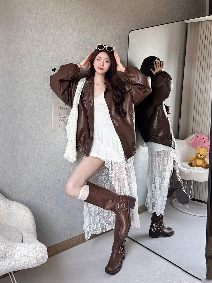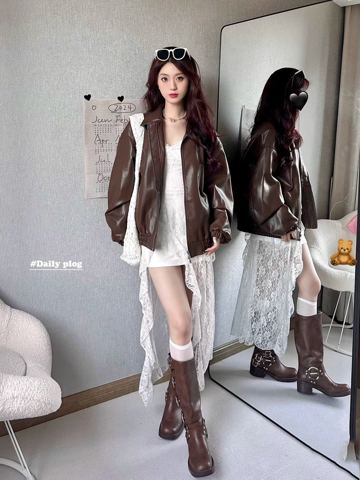 真的会被它的颜值打动 怕自己“撑不起”皮衣?怕穿了显胖? 今天要推荐的这皮衣 就专为亚洲男女身材设计 不显胖,不臃肿 上身无敌显瘦 随便穿,又酷又美又飒 我真的超级喜欢棕色🏾 颜值巨巨巨高