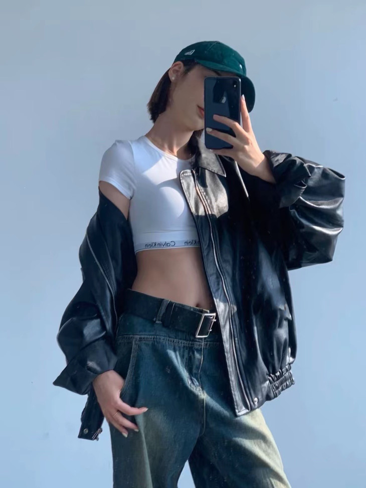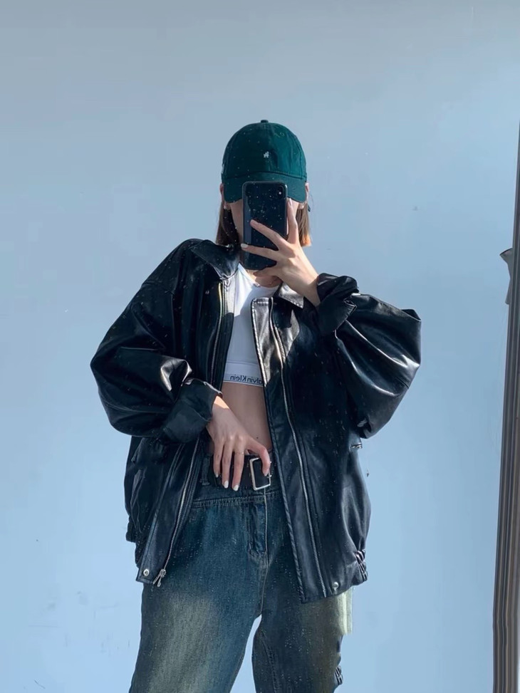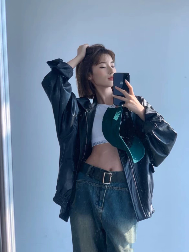黑色 酷帅女孩必备😎!这件黑色机车皮衣让你秒变街头时尚达人🕺,回头率爆表💥!