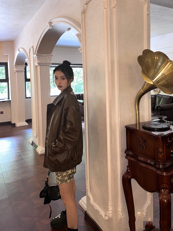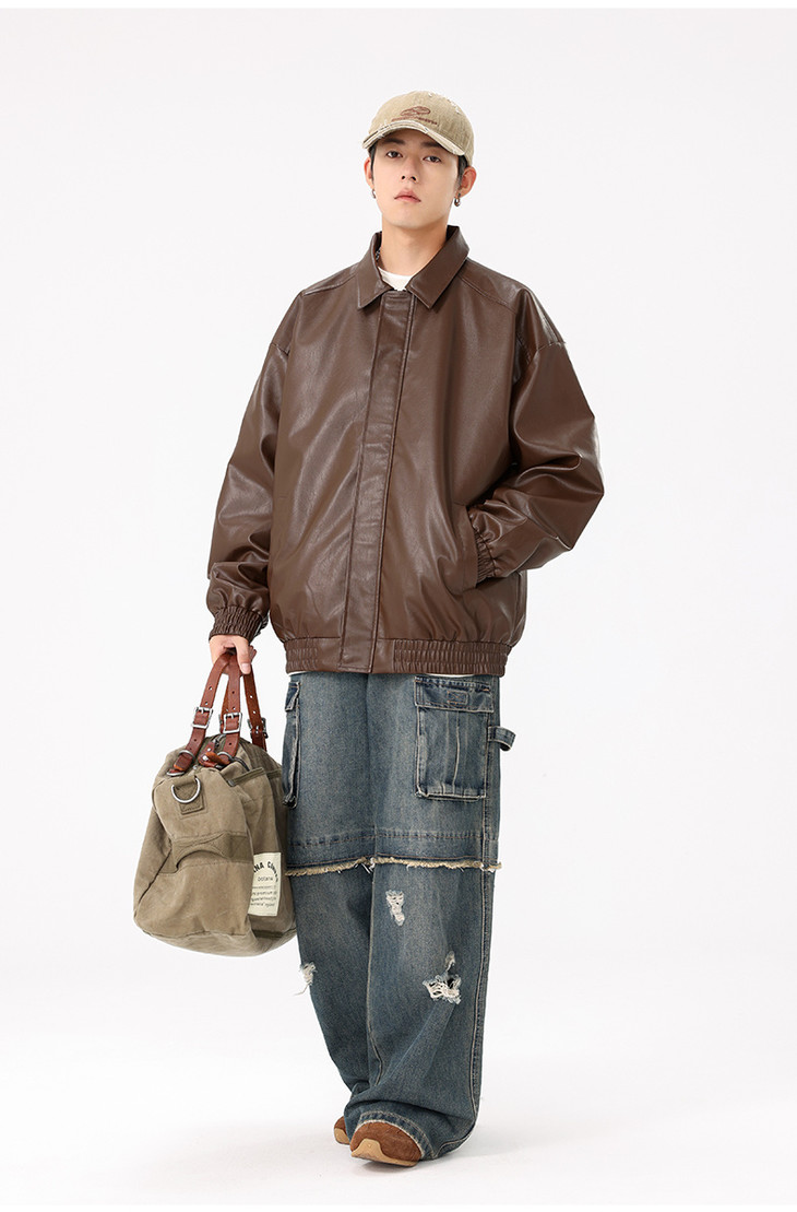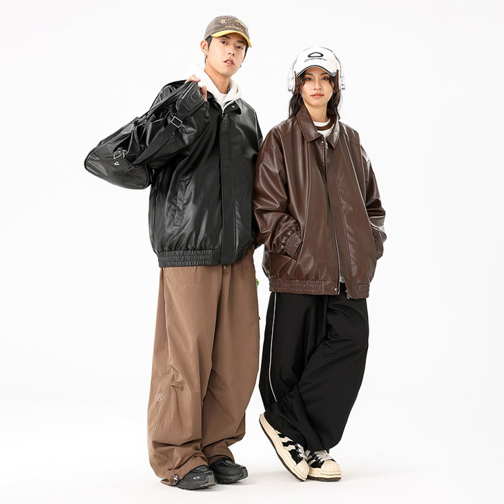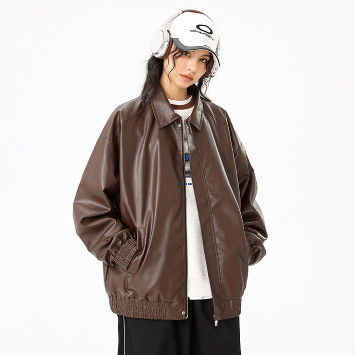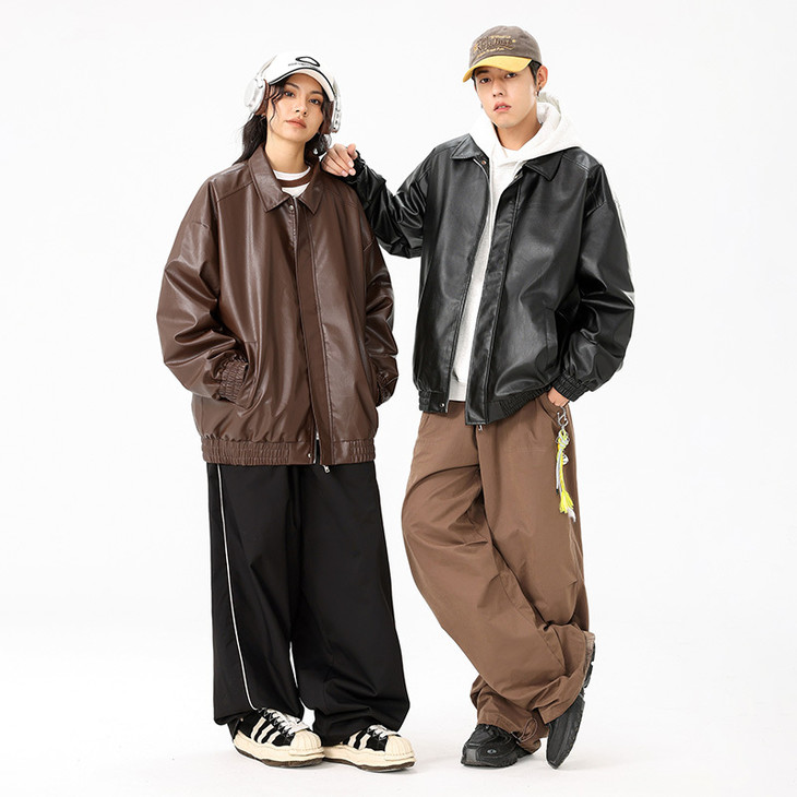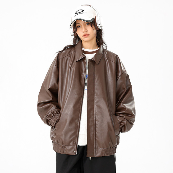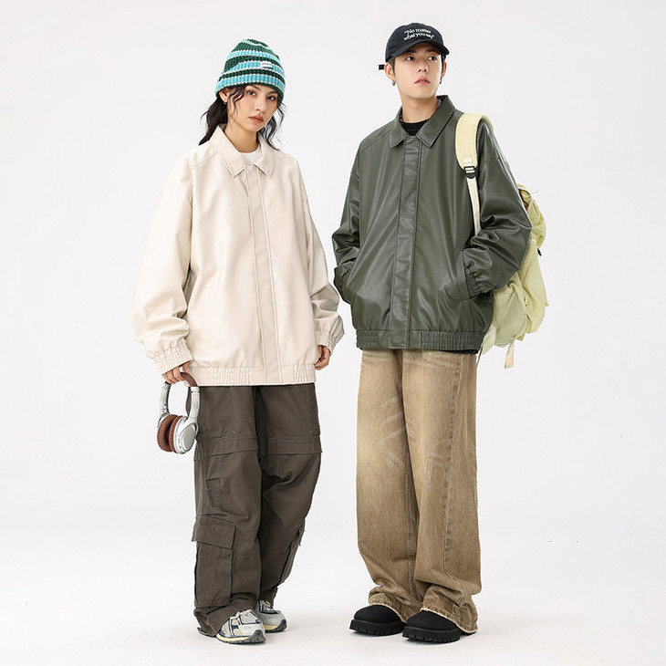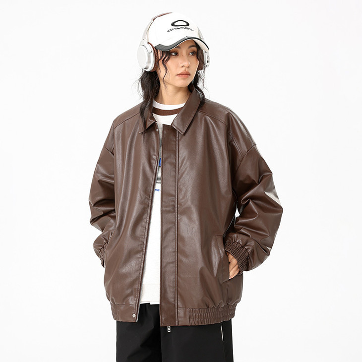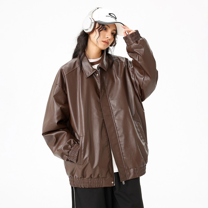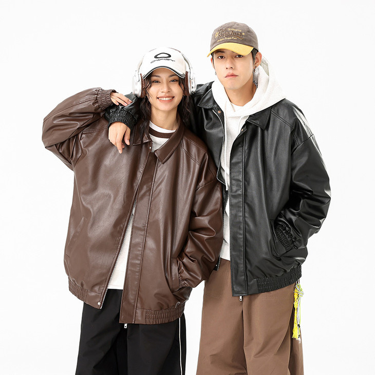 👍👍【美式复古美拉德机车风翻领拉链皮衣 男女同款E50-G2471】💥💥💥 ✅百搭复古,颜值超高🥳 ✅油蜡皮质感,🌈环保PU皮衣外套🔆