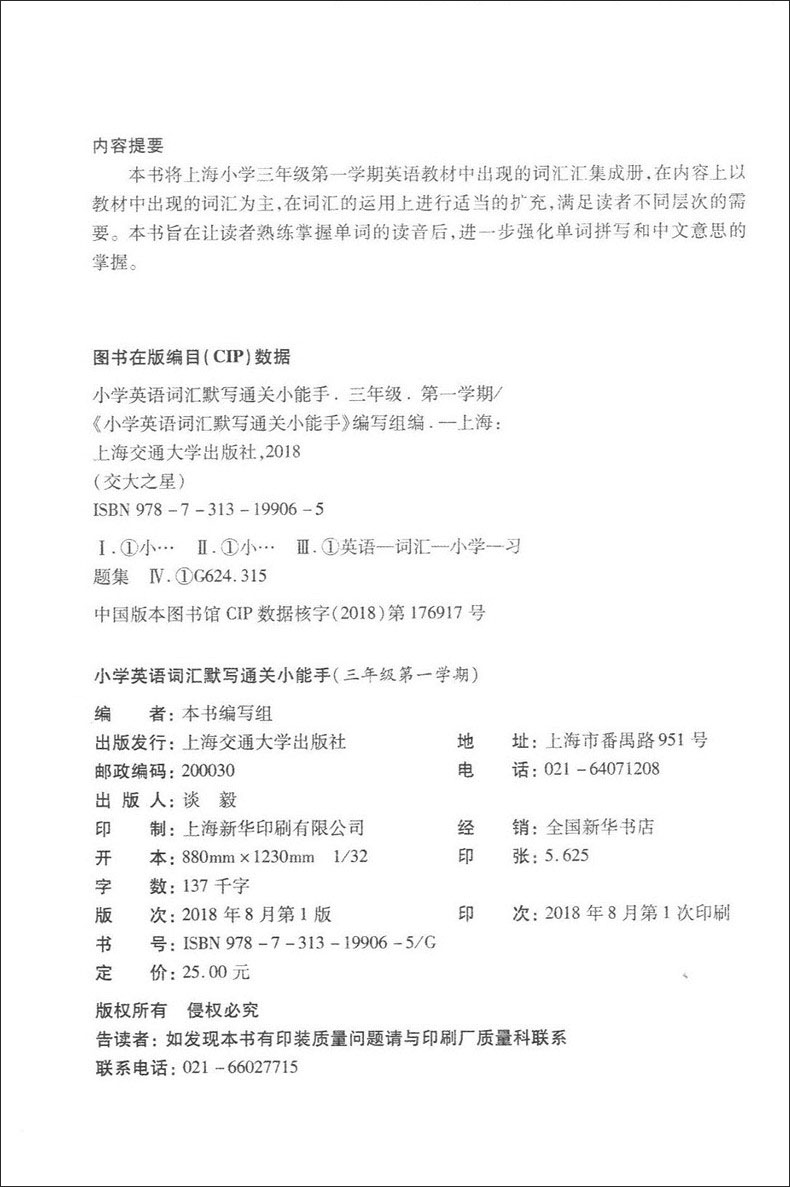 交大之星 小学英语词汇默写通关小能手 三年级第一学期/3年级上 配套上海牛津英语教材使用 小学生英语词汇默写辅导书