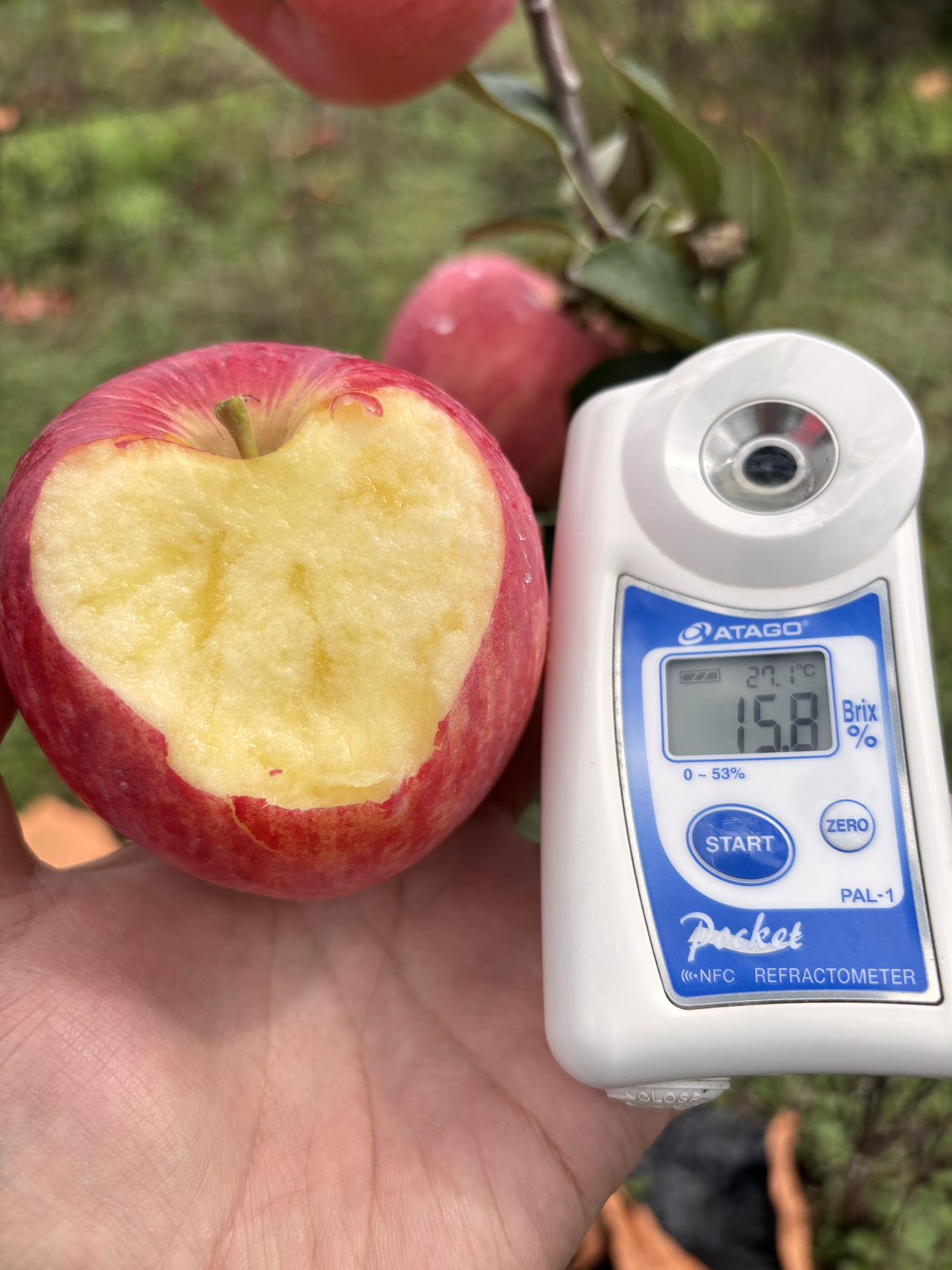 蜜脆✖️富士杂交而成,它汲取了两者的脆和甜,皮薄,水分大,脆度好,含糖量耐贮存,是绝对可带皮吃的苹果。