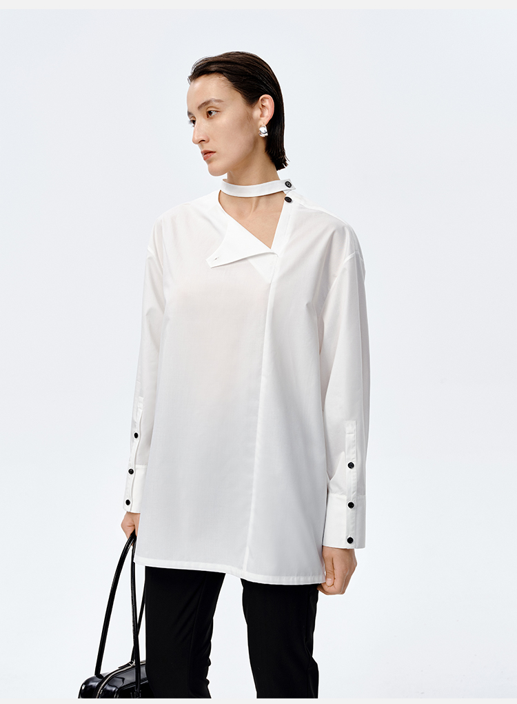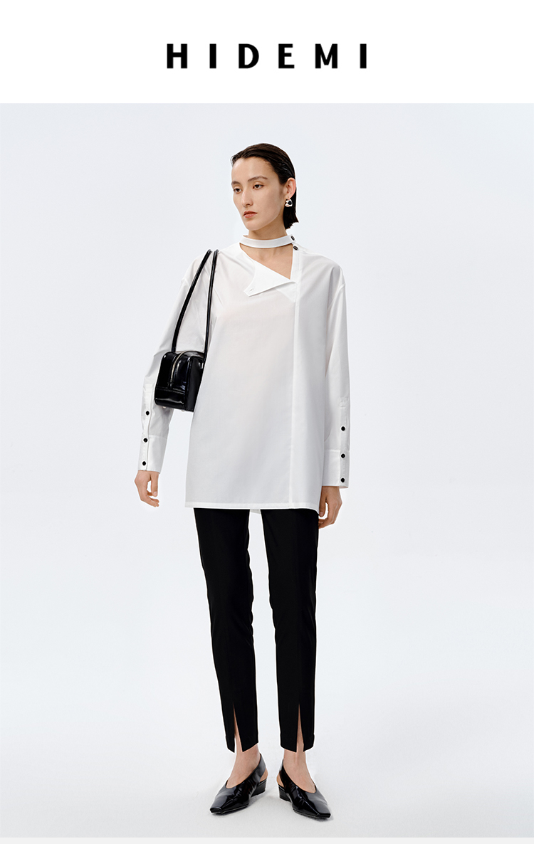 HIDEMI 极简设计感多穿镂空不对称纽扣衬衫