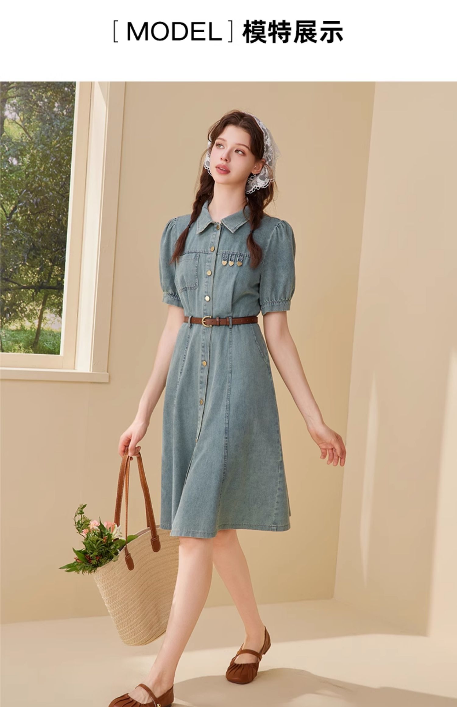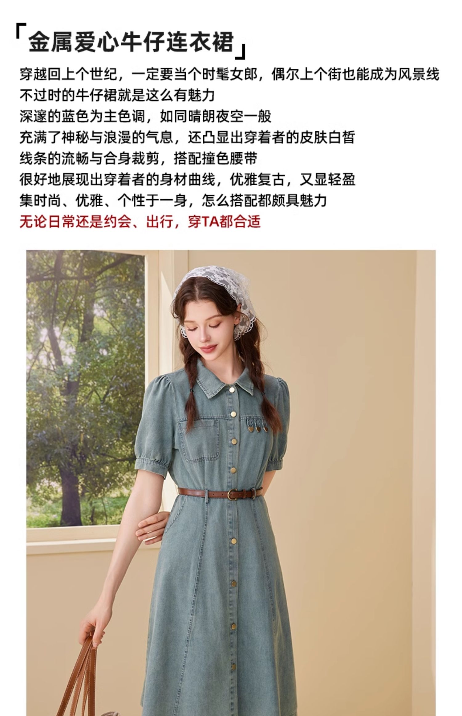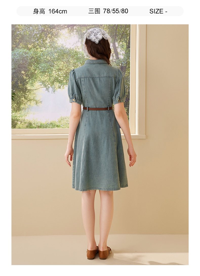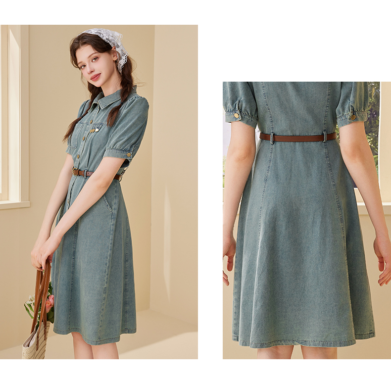 mc2翻领金属爱心牛仔连衣裙女2024夏装新款收腰显瘦甜美减龄洋气