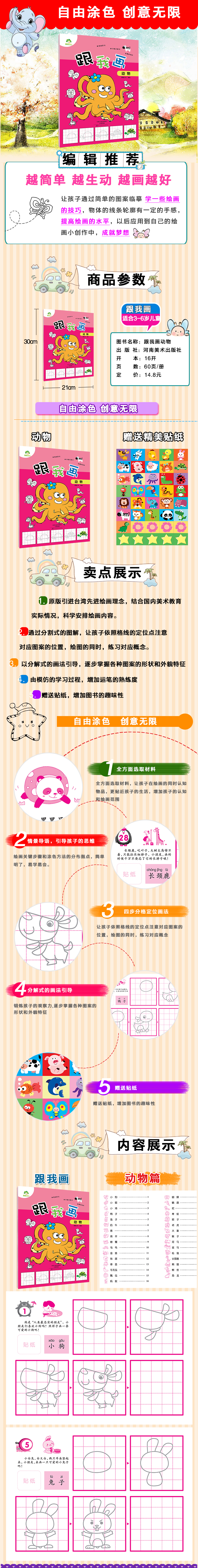 爱德少儿跟我画动物宝宝绘画本儿童书籍宝宝爱涂色2-3-5岁宝宝学画画书早教益智涂鸦填色本艺术美术绘画简笔画幼儿园中小班启蒙