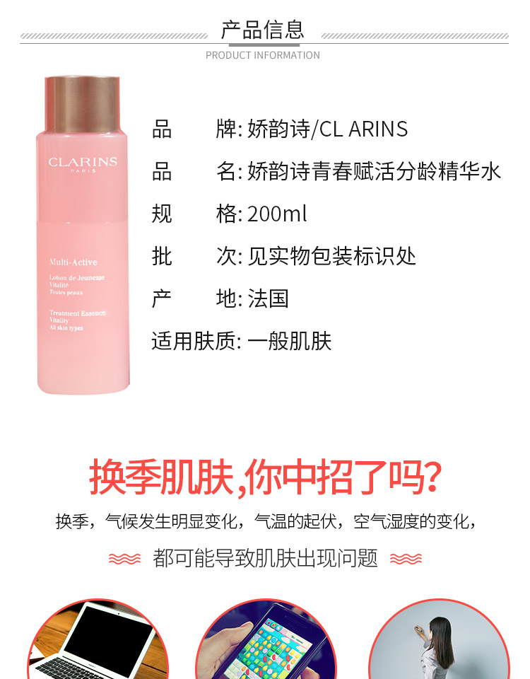 【YZ】Clarins娇韵诗青春赋活分龄精华水200ml粉水