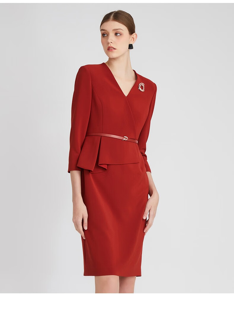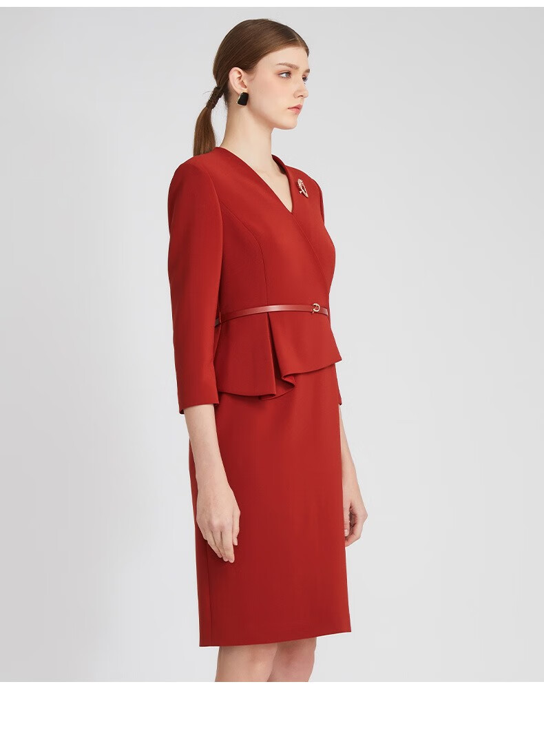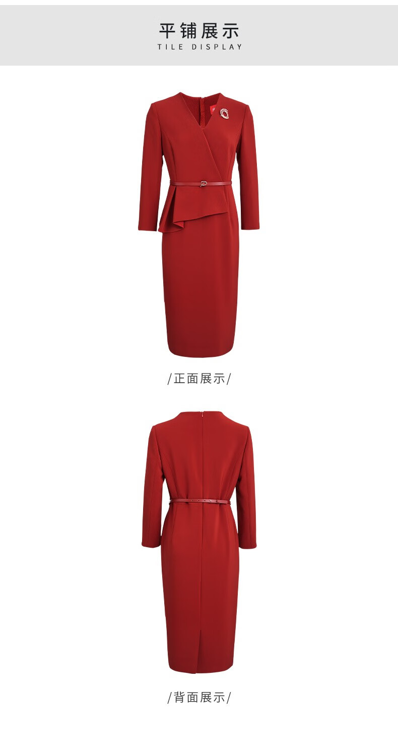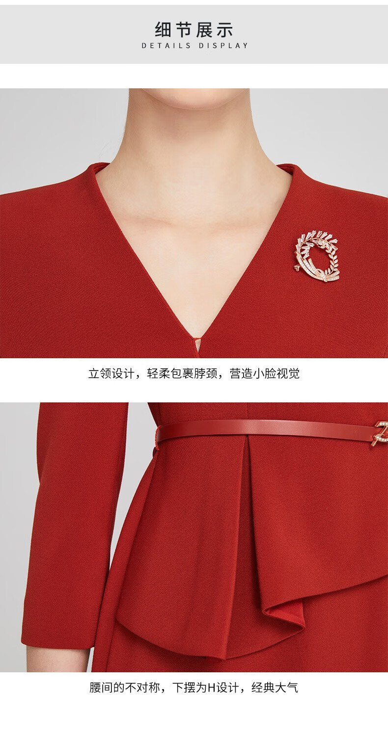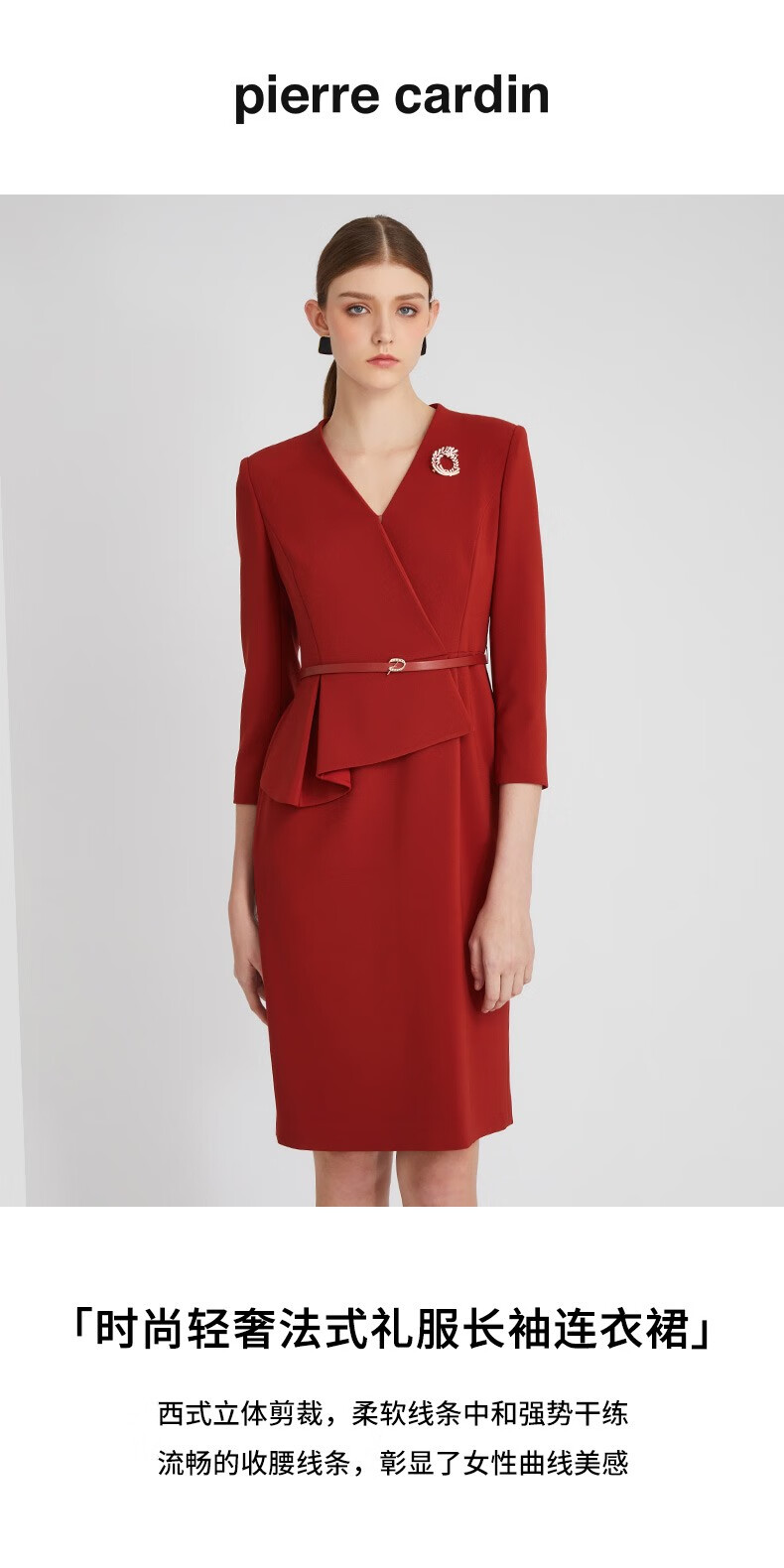 皮尔卡丹女装知性简约修身通勤气质假两件连衣裙P2326E2943C0