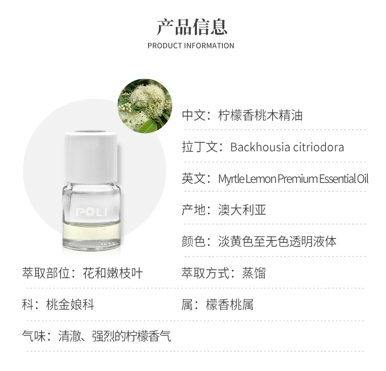 澳大利亚进口柠檬香桃木精油 护肤刮痧精油颇黎单方精油原料