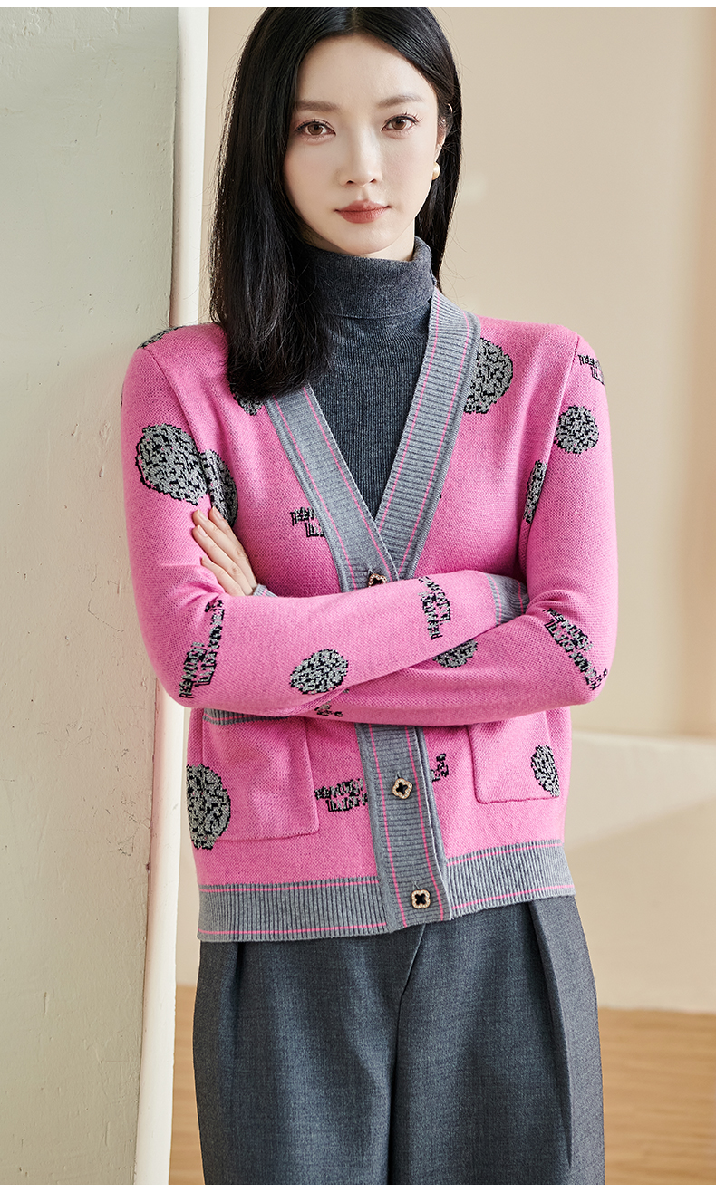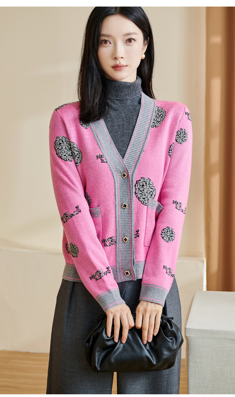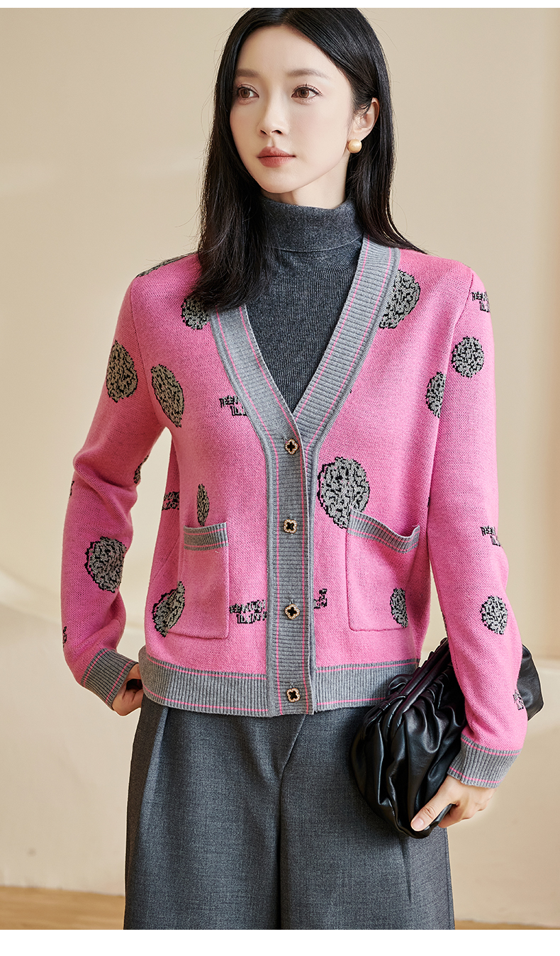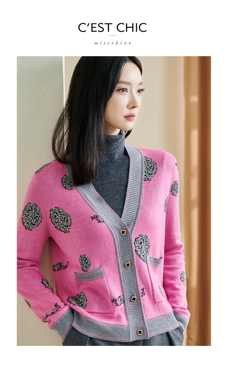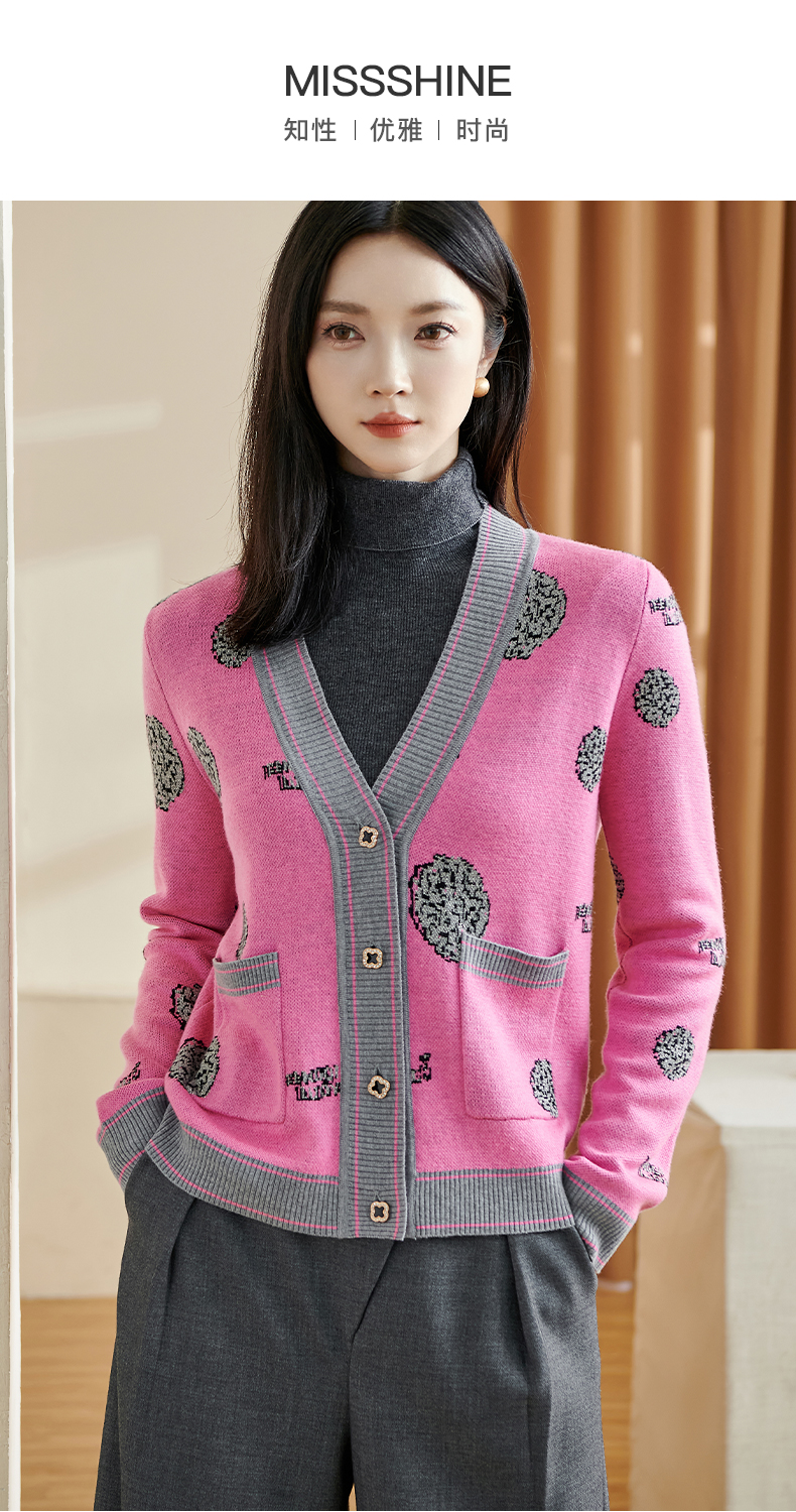 米思阳2026春季新款气质知性开衫针织衫单排扣长袖拼接外套女2959