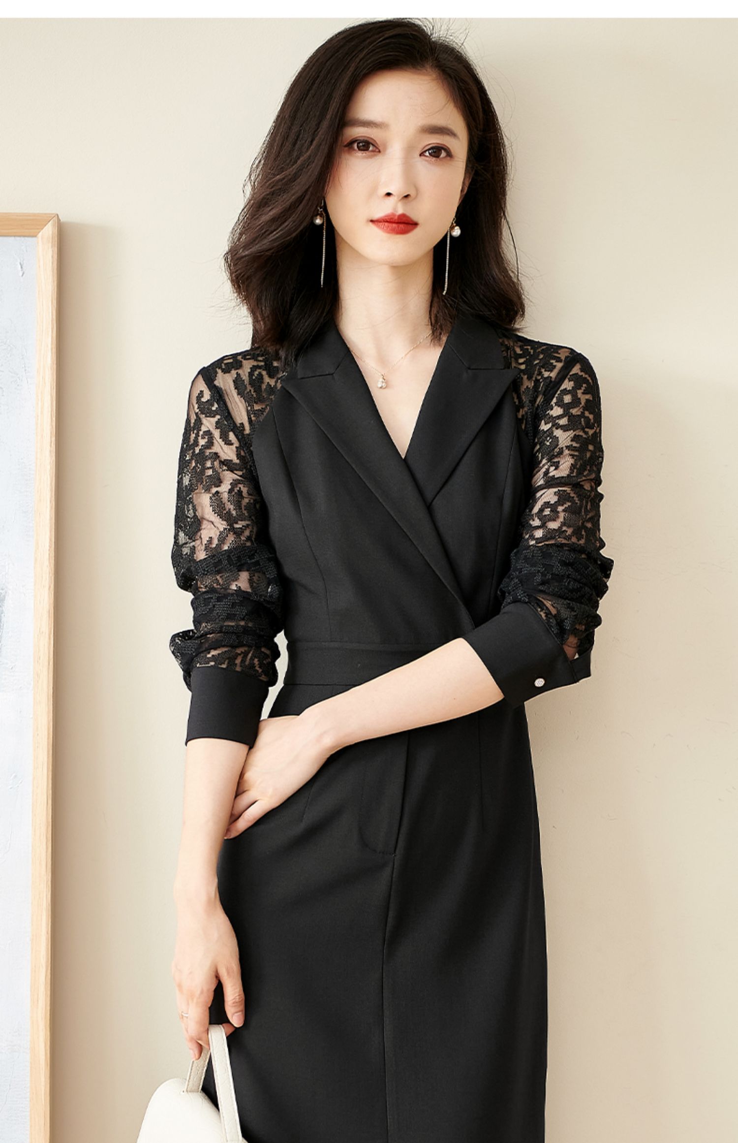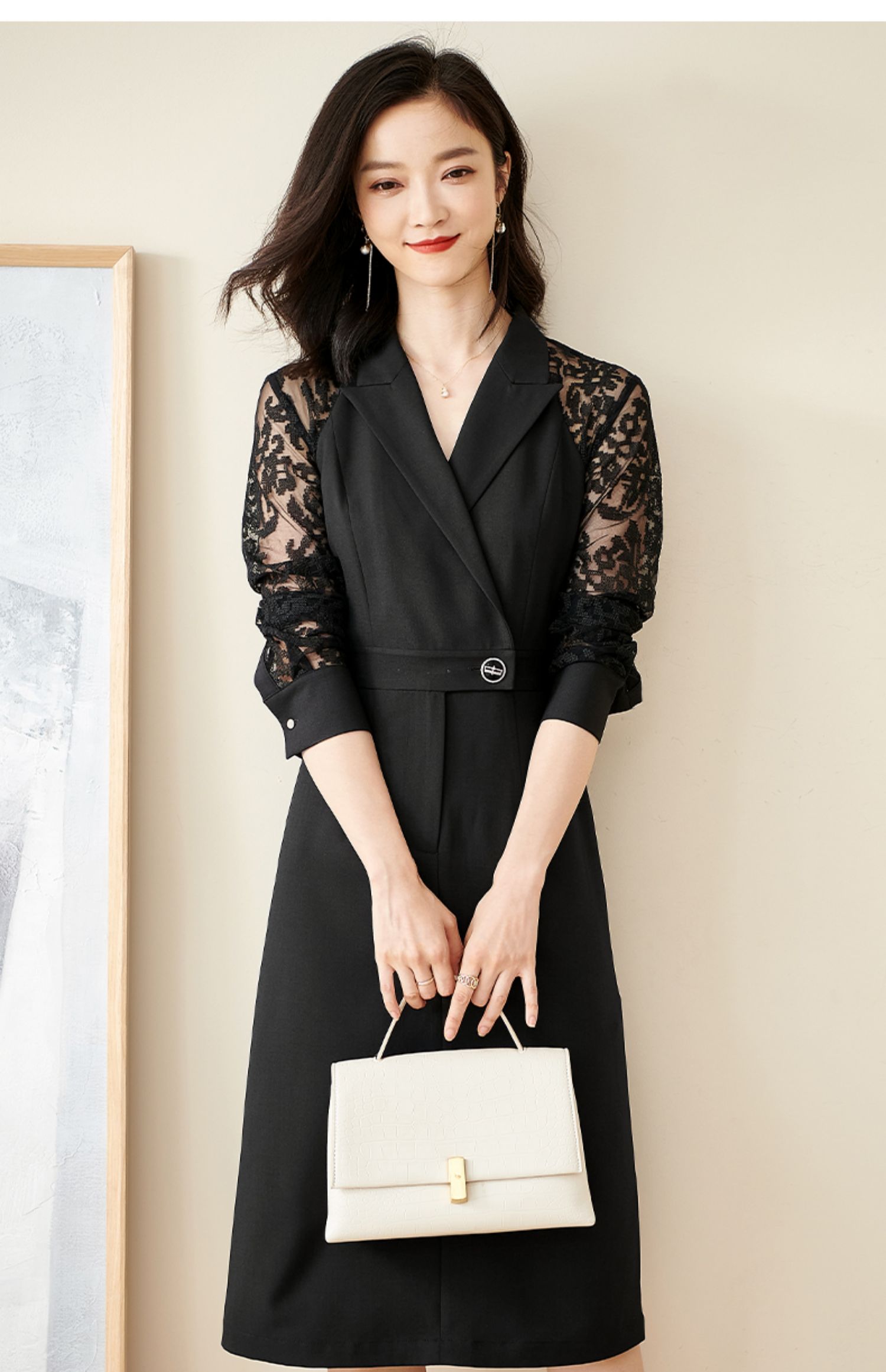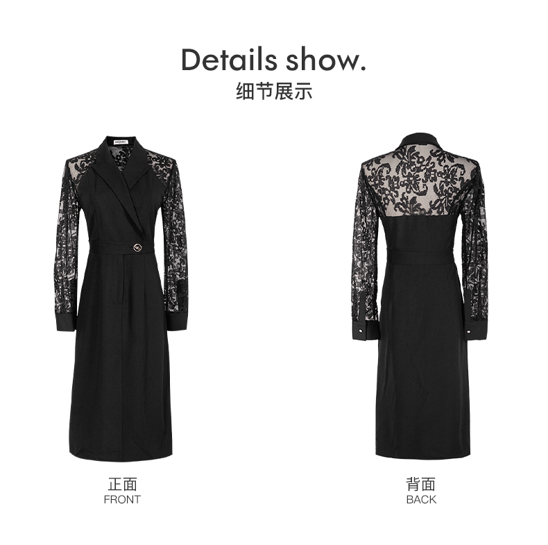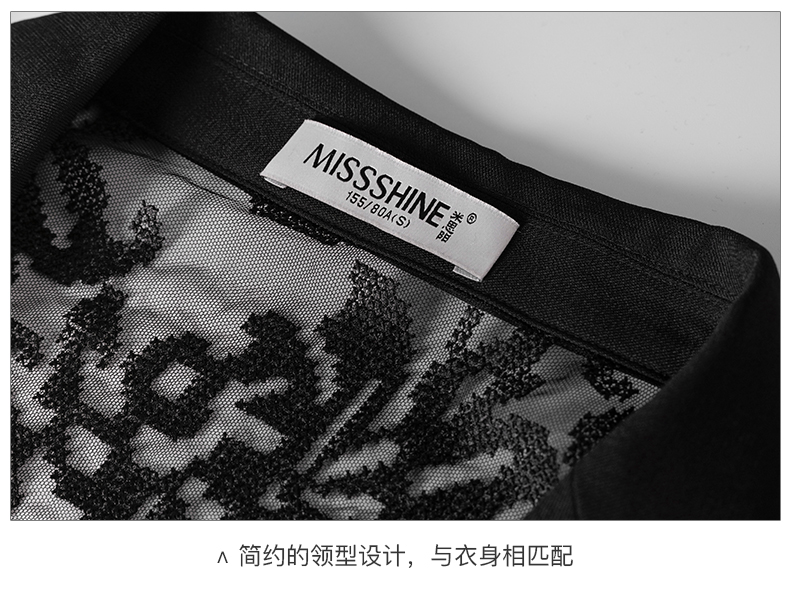 剩S 米思阳连衣裙新款知性优雅黑色刺绣蕾丝显瘦小众a字裙1565