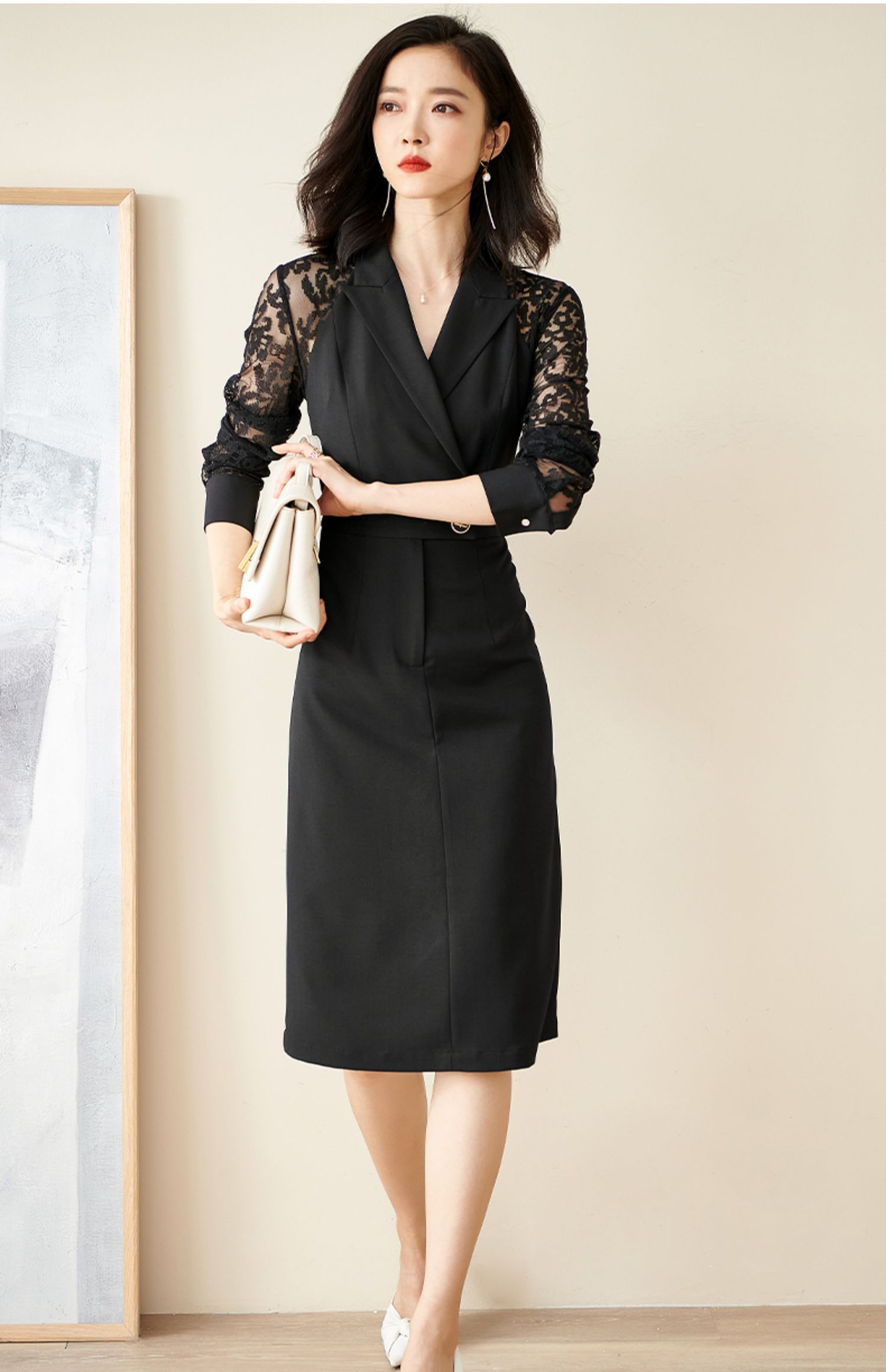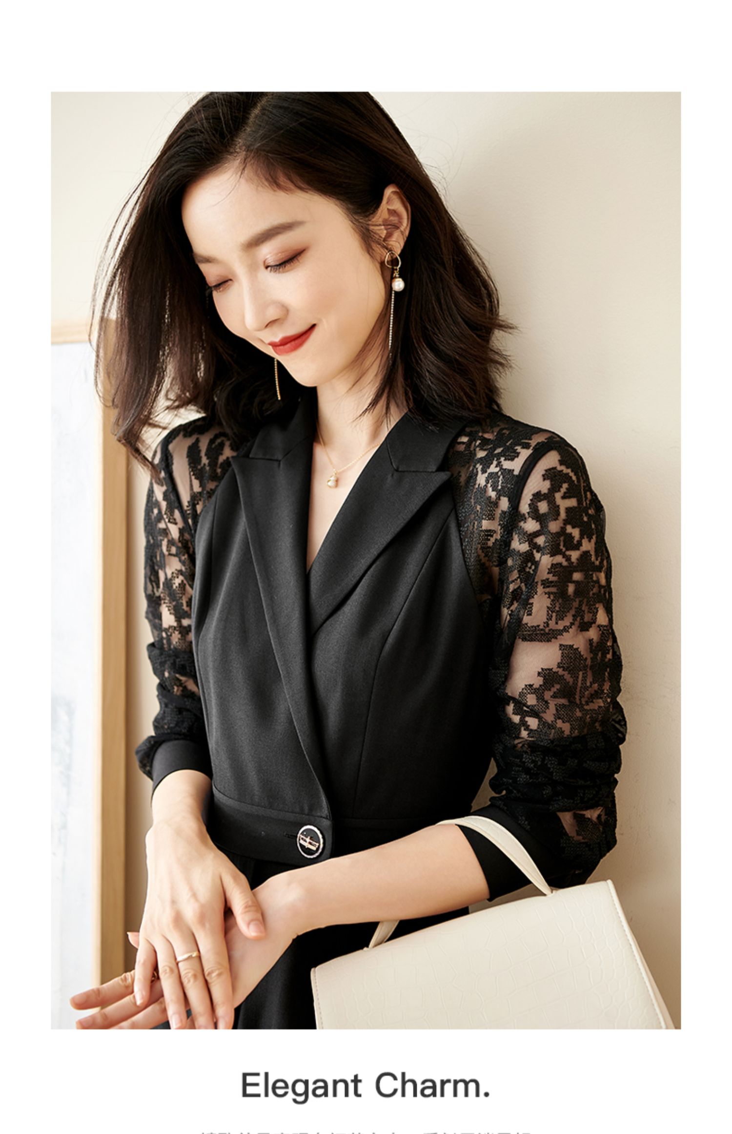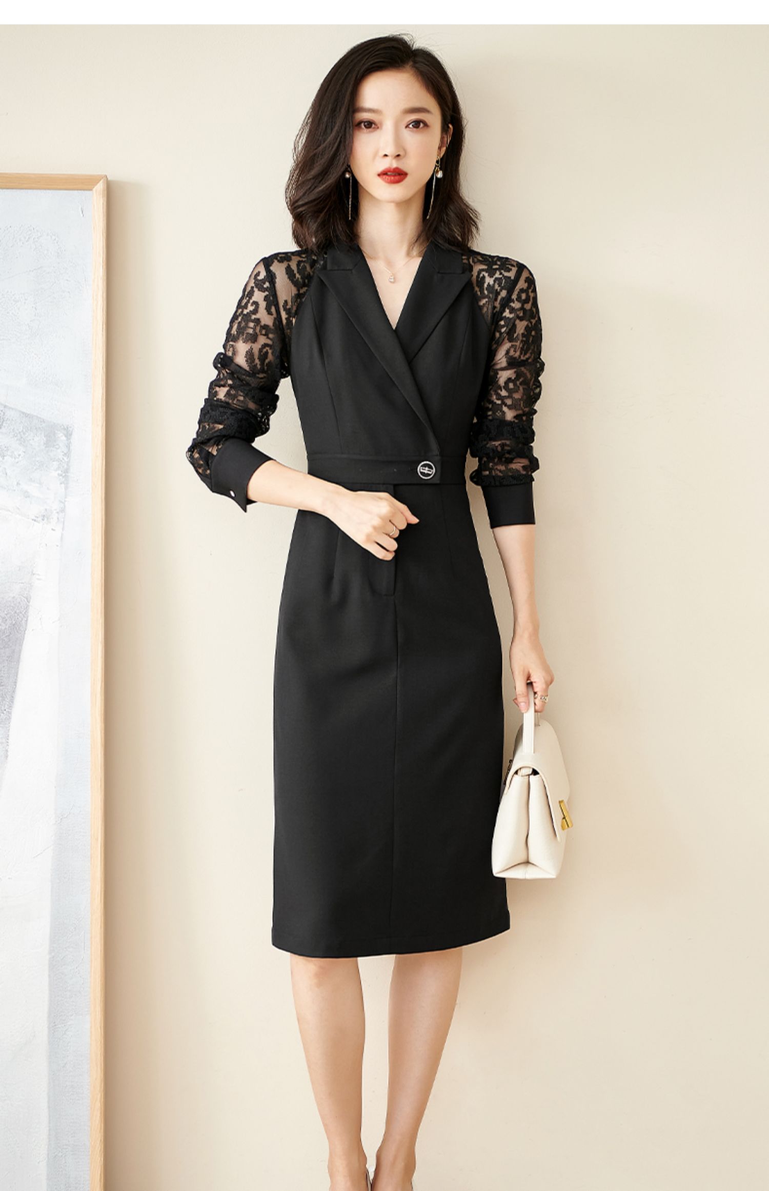 剩S 米思阳连衣裙新款知性优雅黑色刺绣蕾丝显瘦小众a字裙1565
