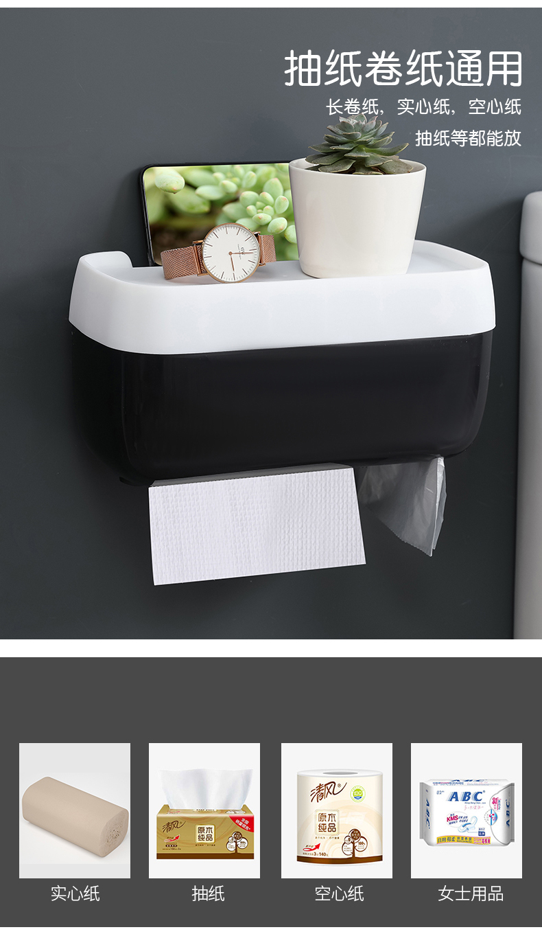 卫生间卫生纸盒厕纸纸巾置物架厕所家用免打孔创意防水抽纸卷纸筒