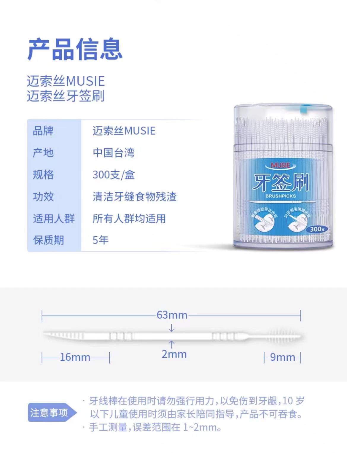 【中欧班列精选】台湾迈索丝牙签刷 原装进口英国进口细滑牙线棒牙缝清洁两用 300支/盒