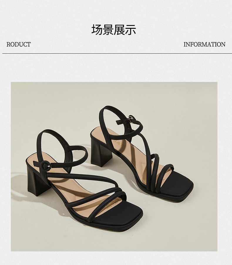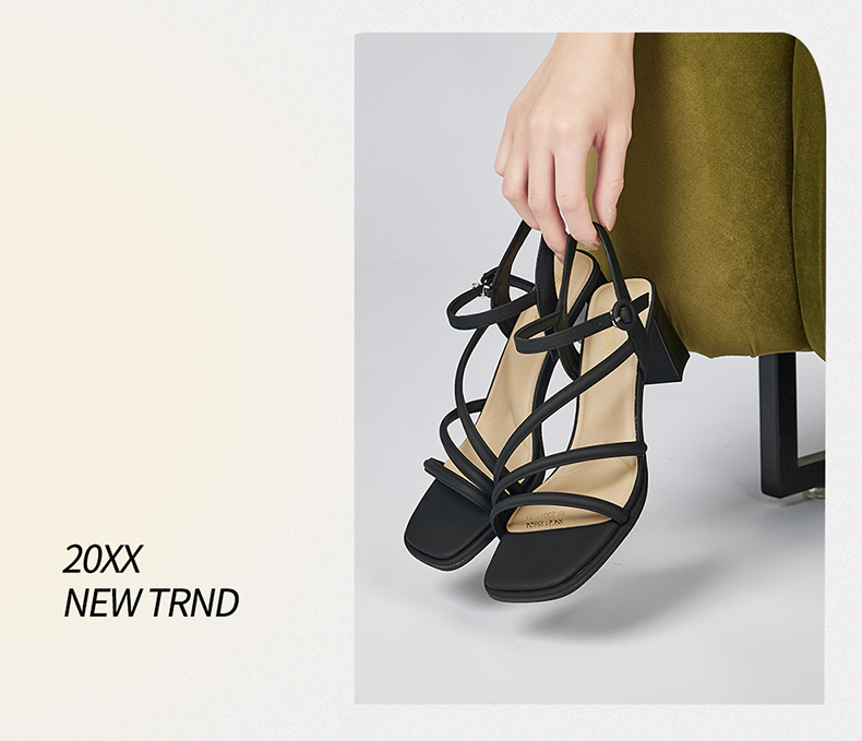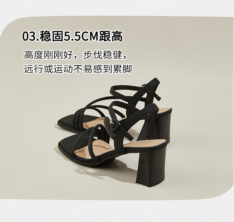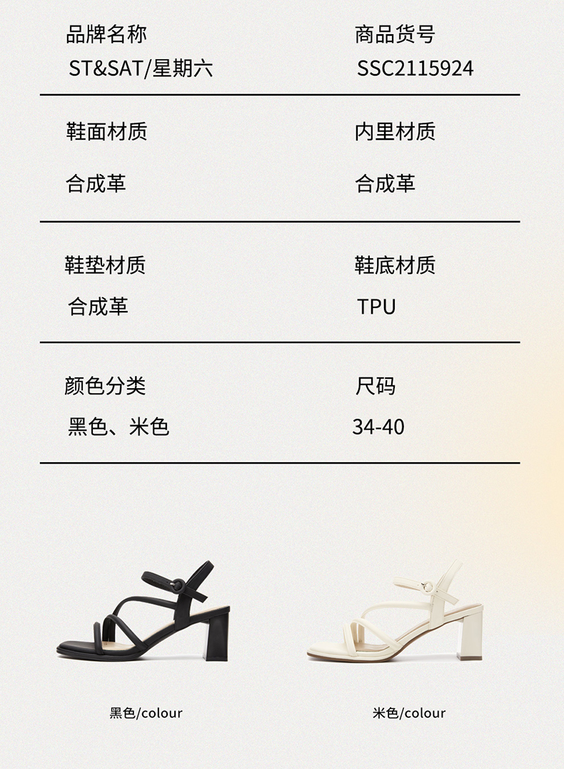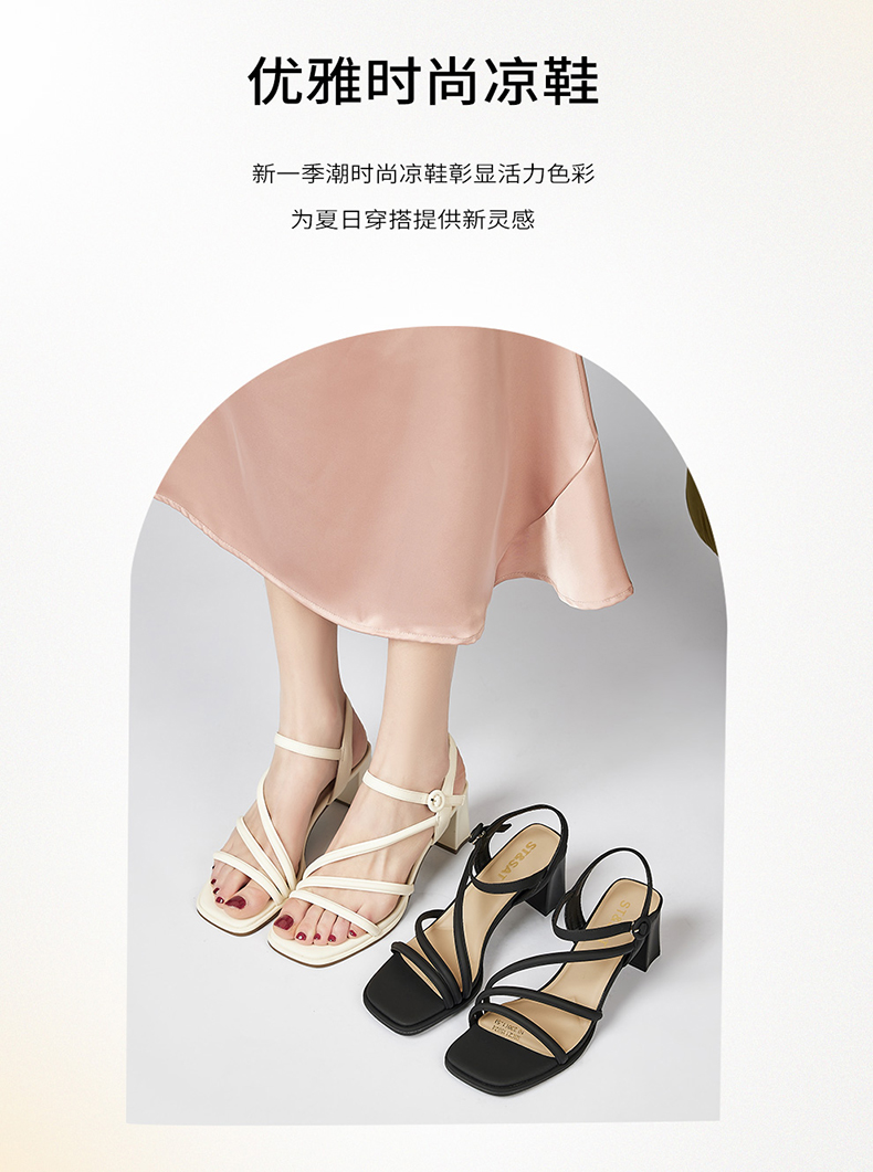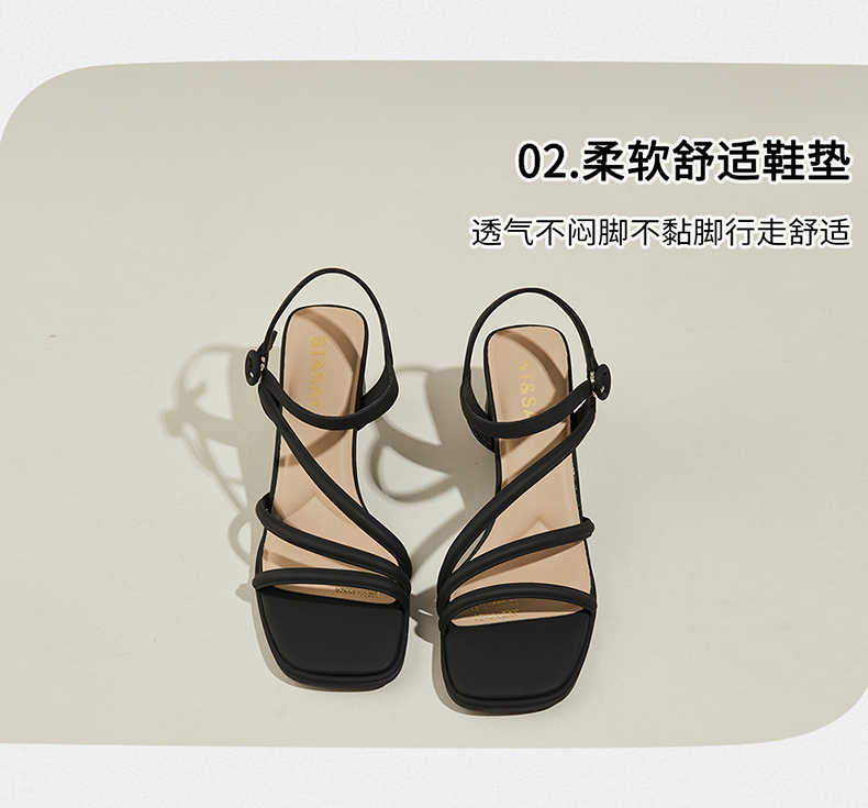 星期六简约条带时髦方头粗跟凉鞋SSC2115924