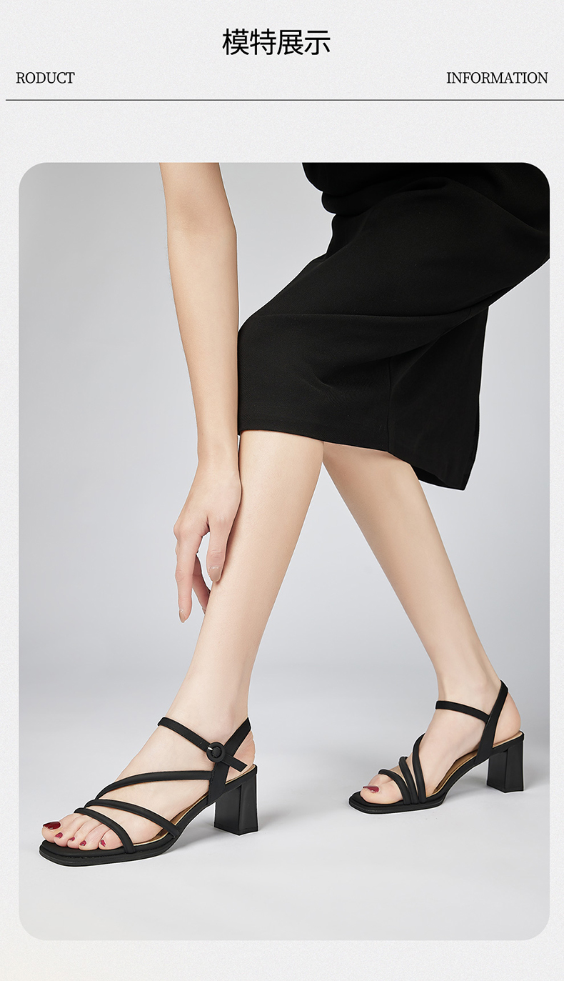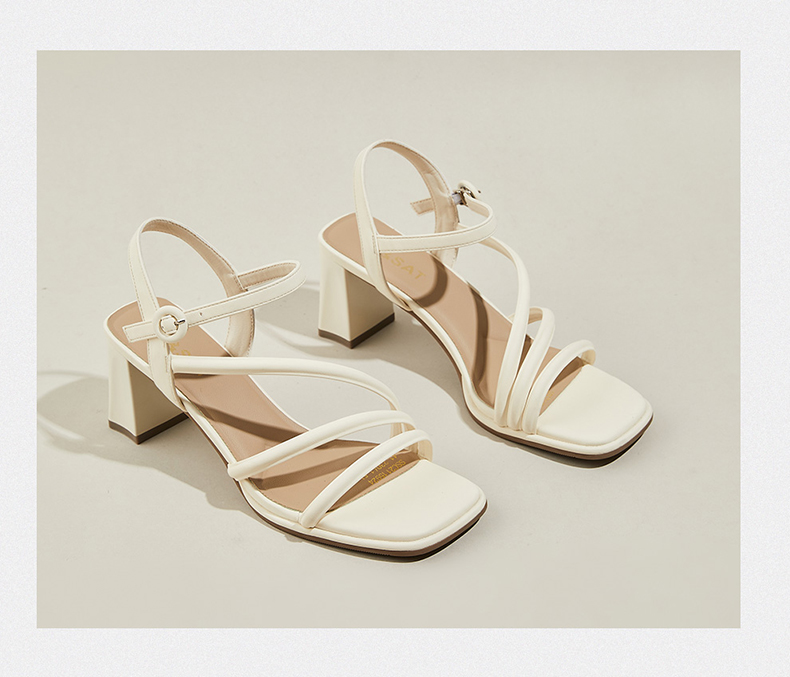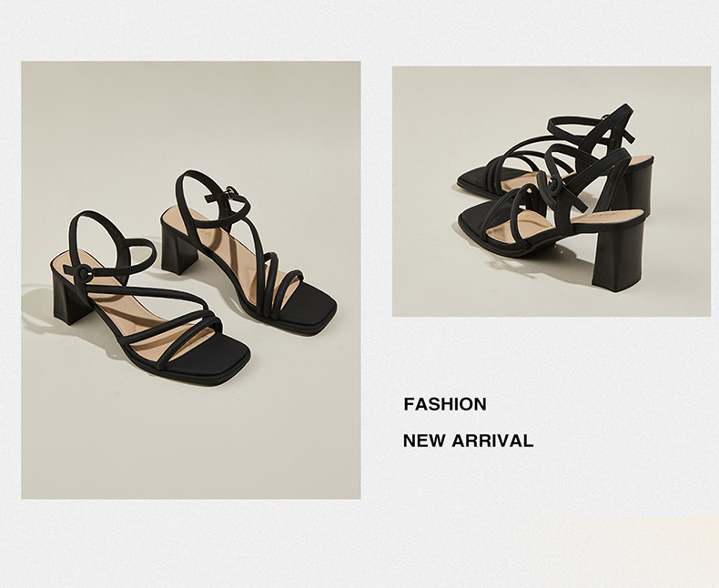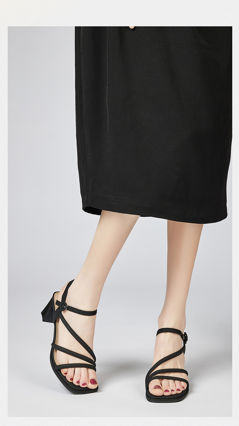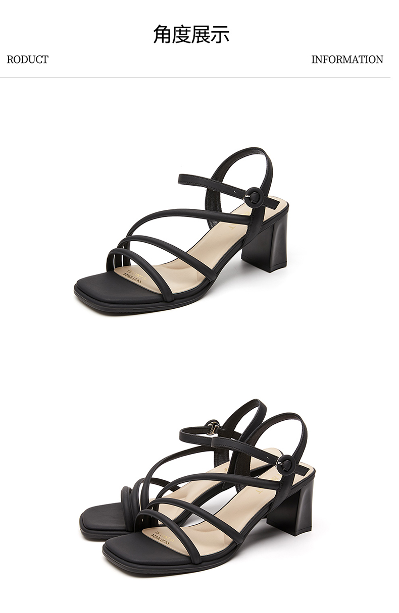星期六简约条带时髦方头粗跟凉鞋SSC2115924
