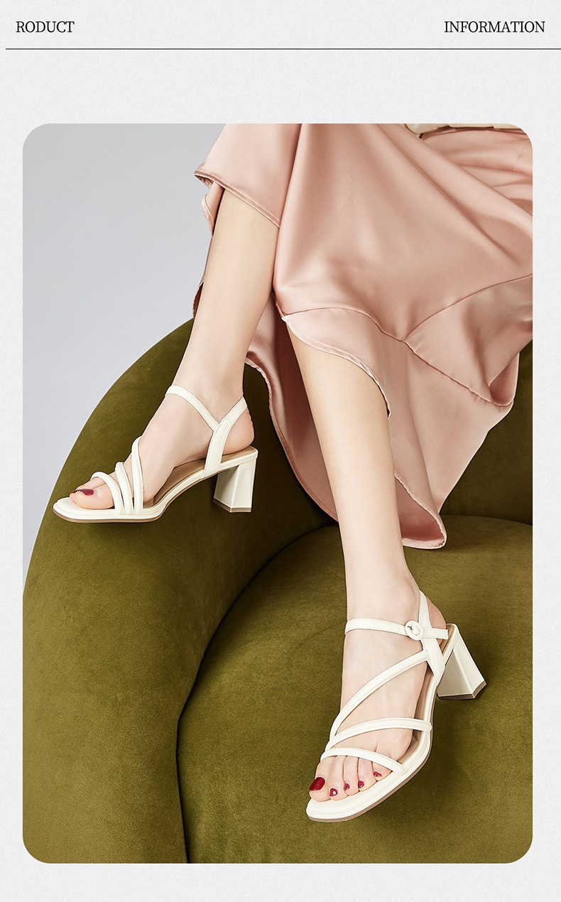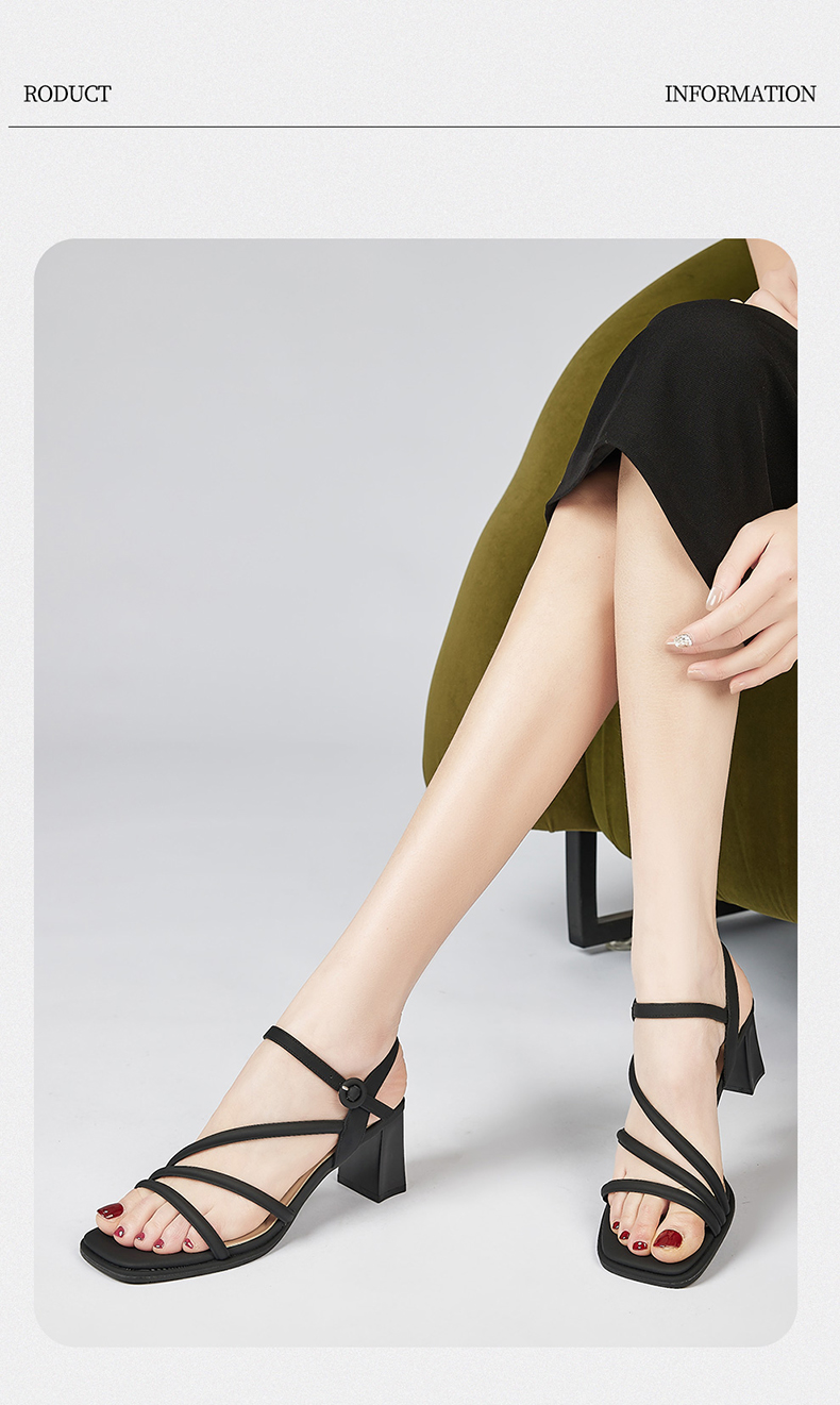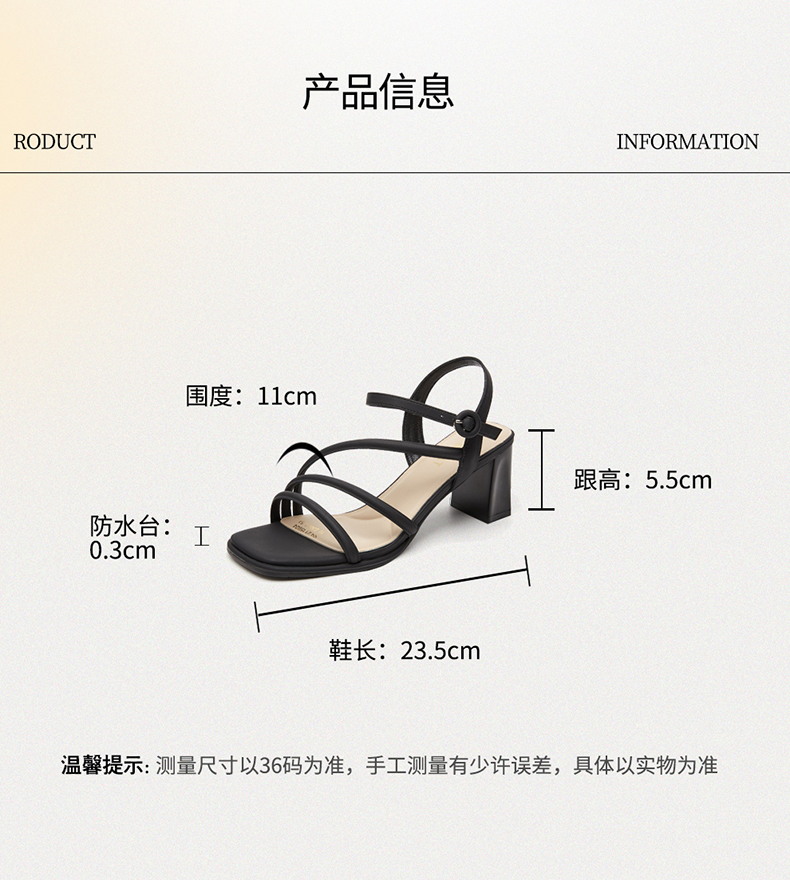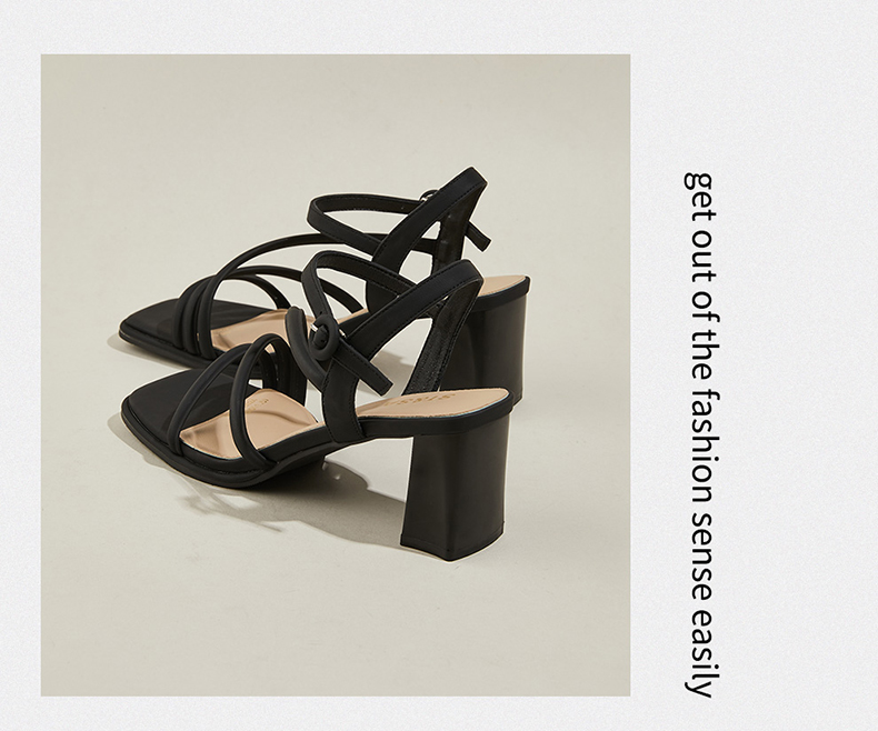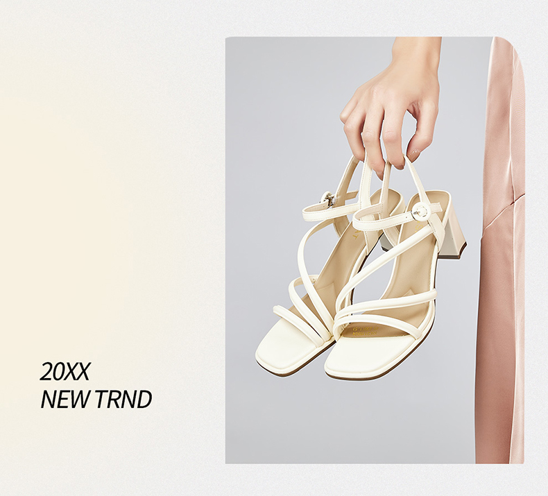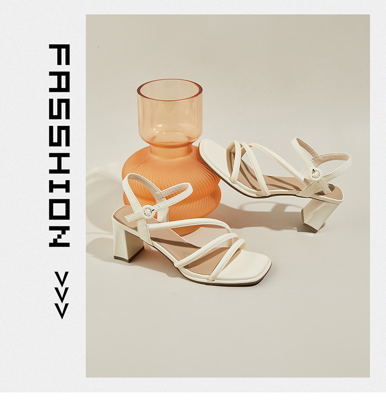 星期六简约条带时髦方头粗跟凉鞋SSC2115924
