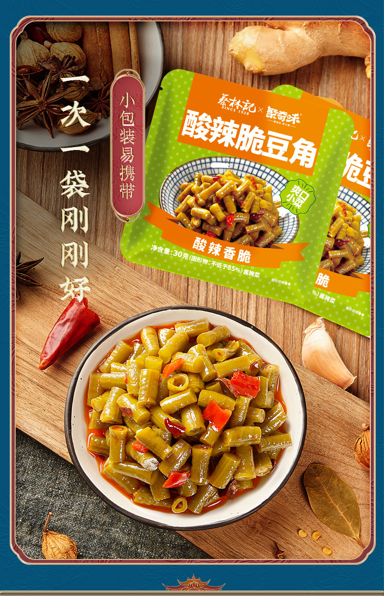 【20包】蔡林记联名下饭小菜酸辣脆豆角30g*20 独立包装