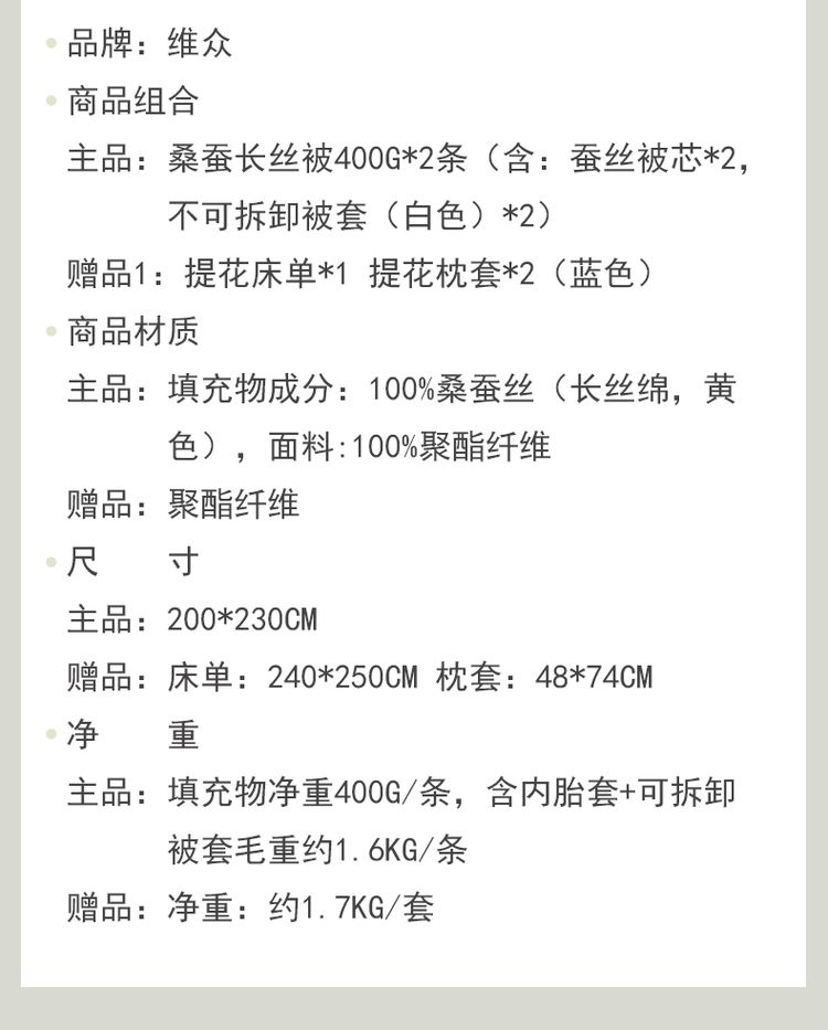 维众黄金桑蚕长丝被春夏款