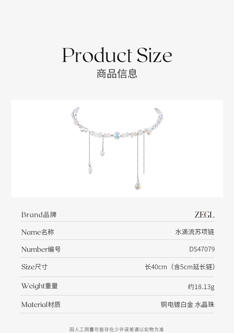 ZEGL水滴流苏项链女生轻奢小众2023新款爆款水晶锁骨链choker颈链