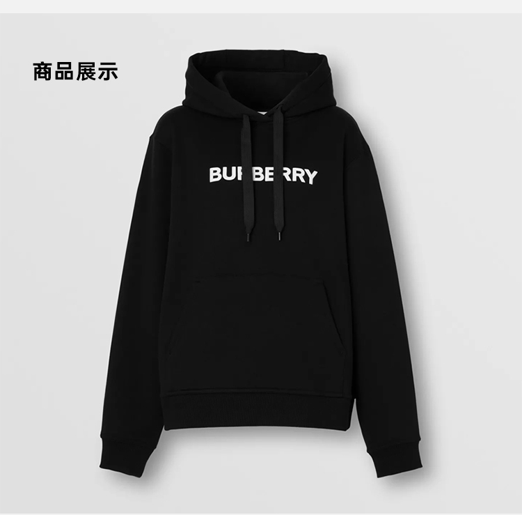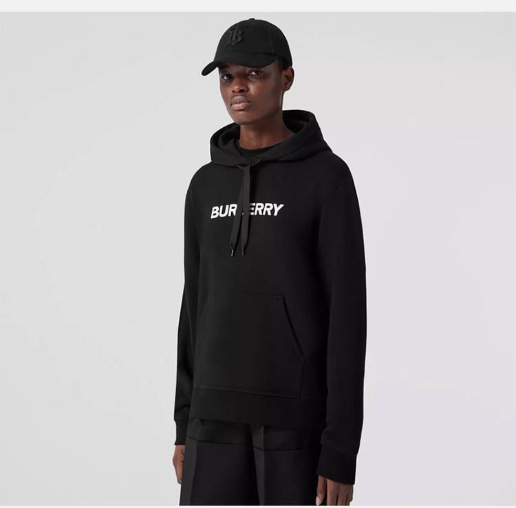 【二】BURBERRY 巴宝莉 女士字母徽标印花棉质连帽长袖卫衣 黑色 8054386 A1189