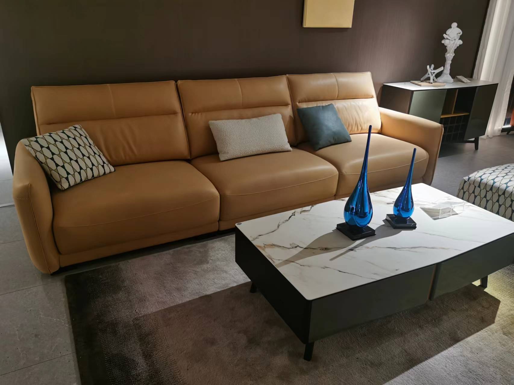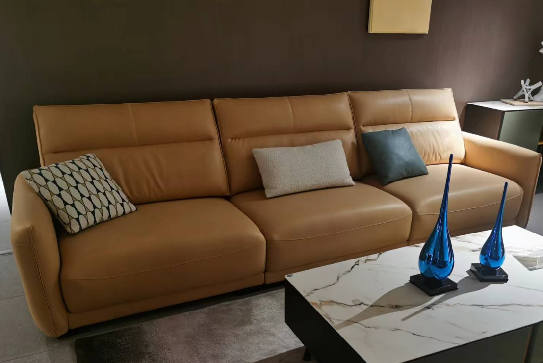 【成都焕新】客厅现代简约一字沙发小户型直排皮沙发 香槟咖色