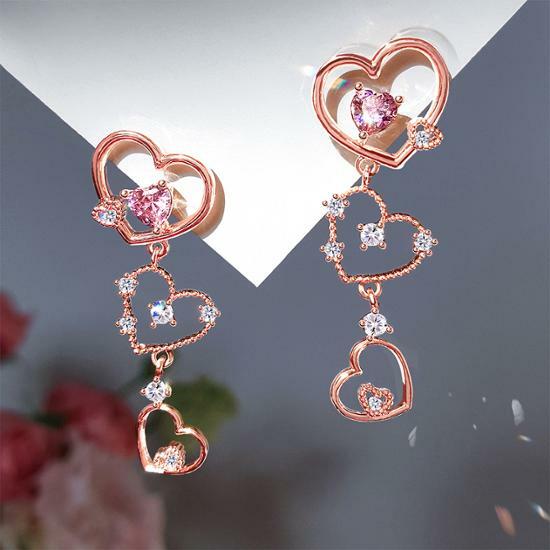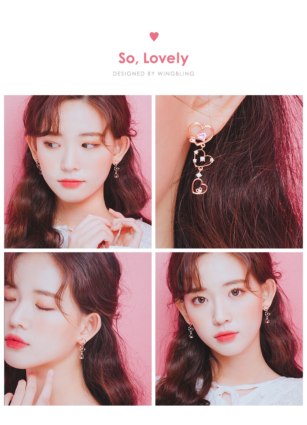 韩国Wingbling可爱爱心长款耳环爱豆同款(粉红色)Olive YoungJPY带授权招加盟代理