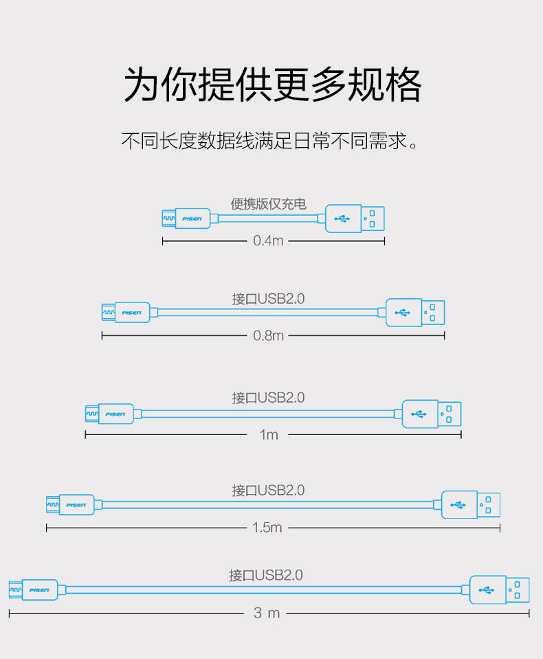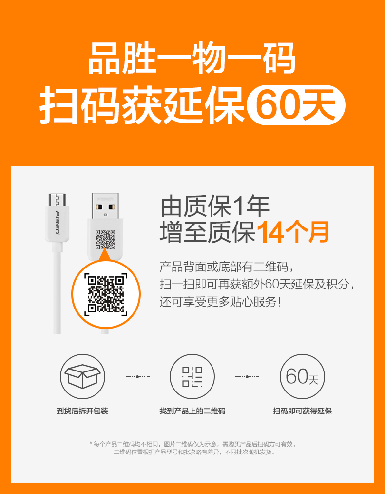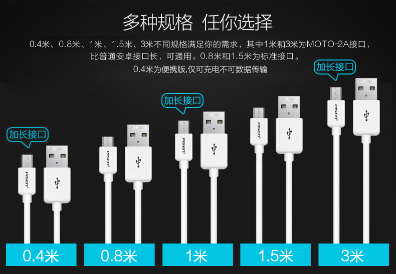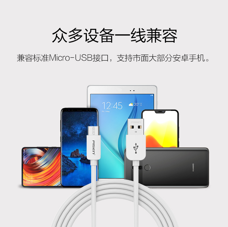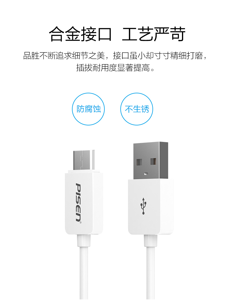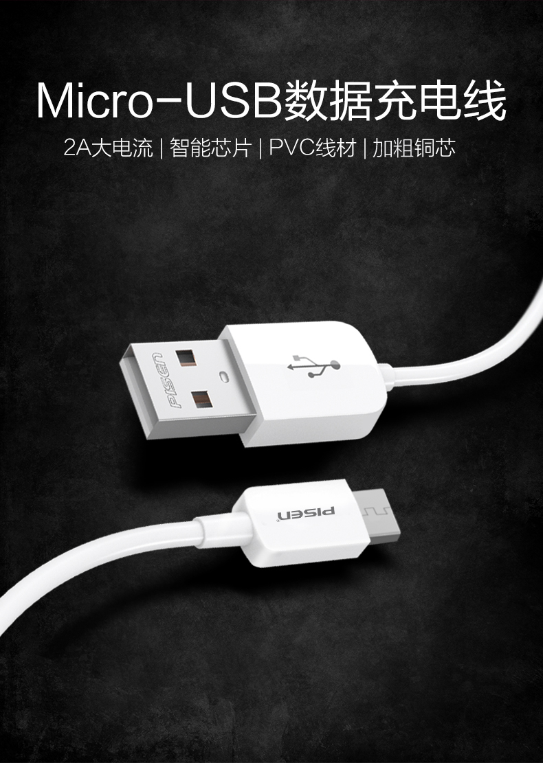 品胜(PISEN)安卓Micro USB数据线 手机充电线长1.5米白色1盒装JPY带授权招加盟代理