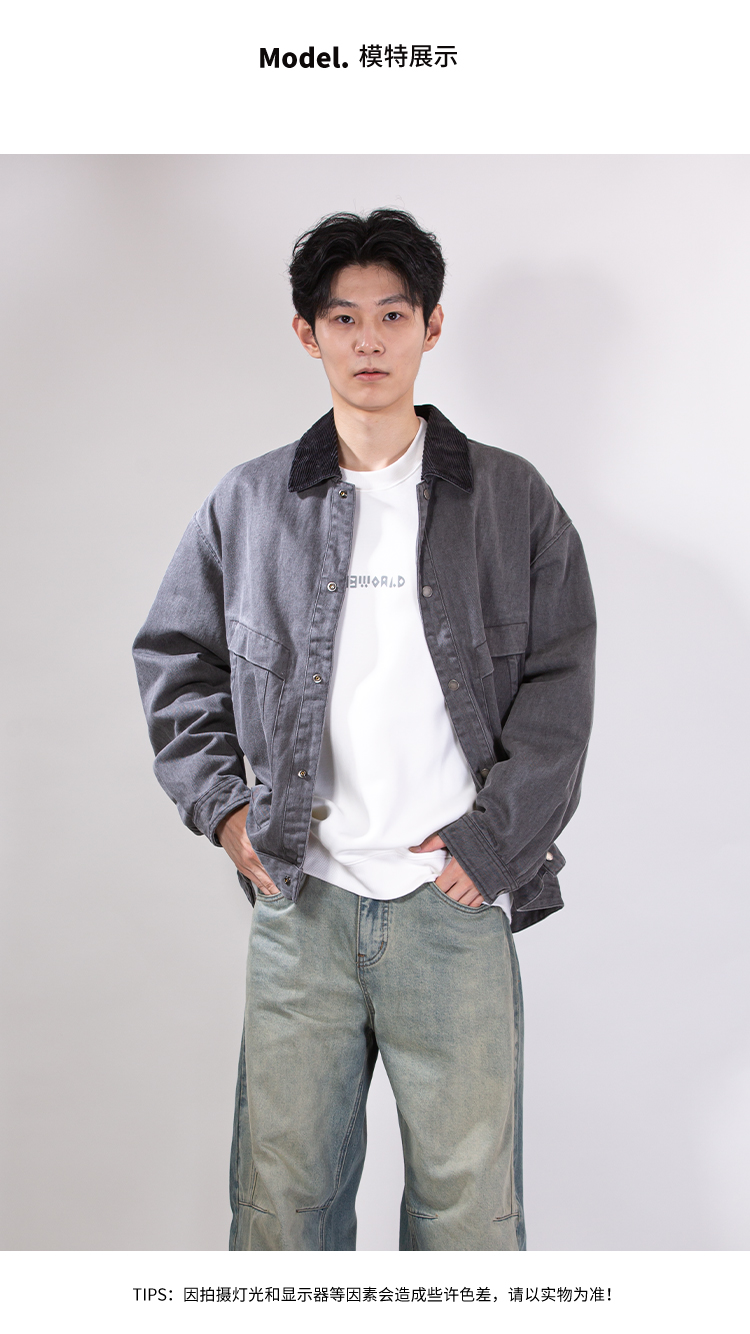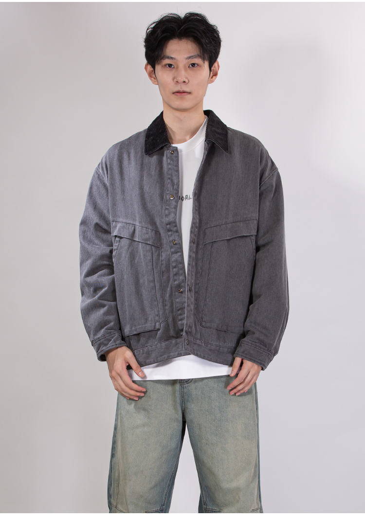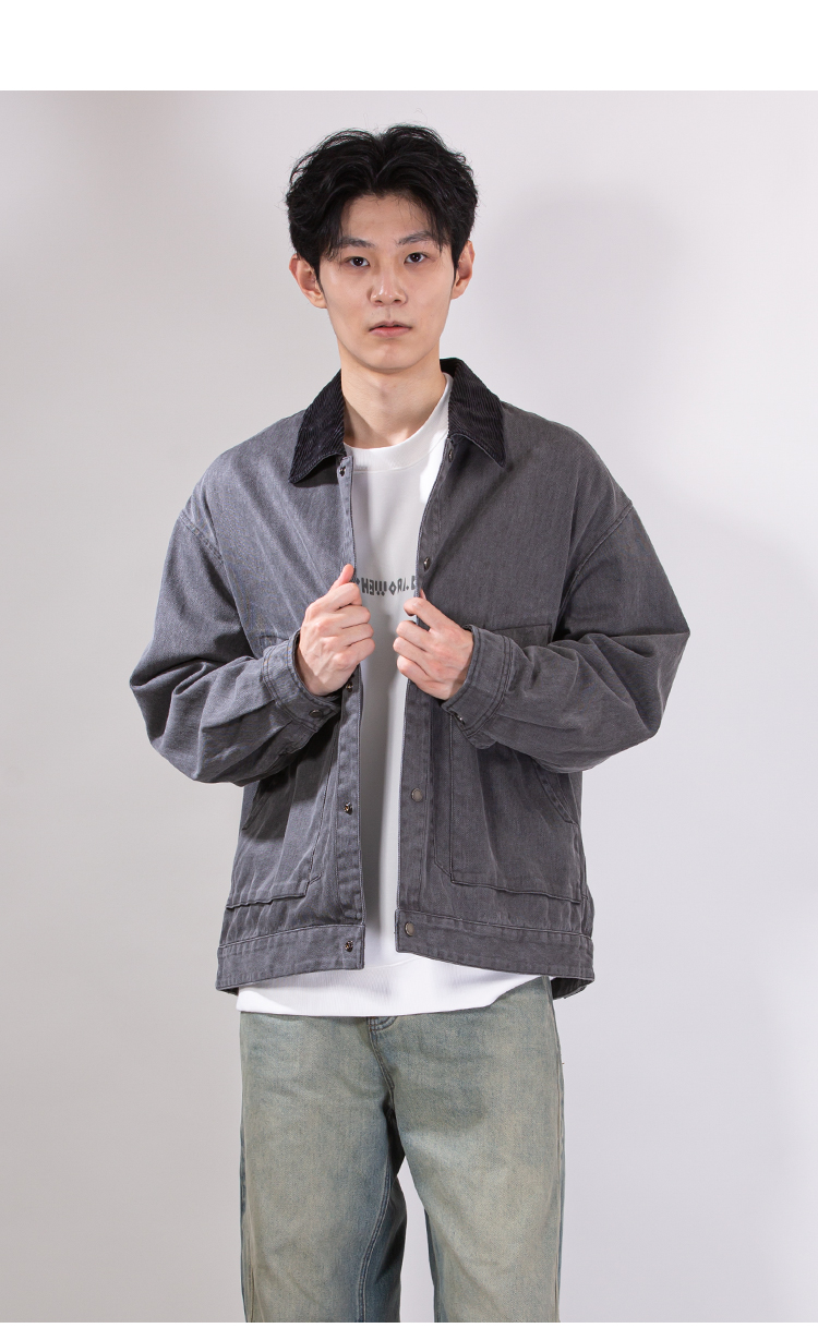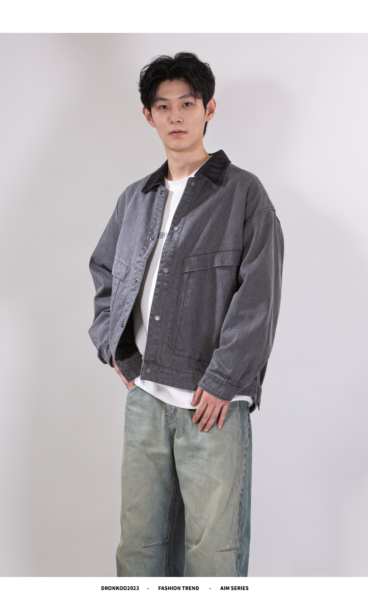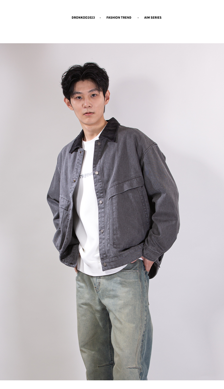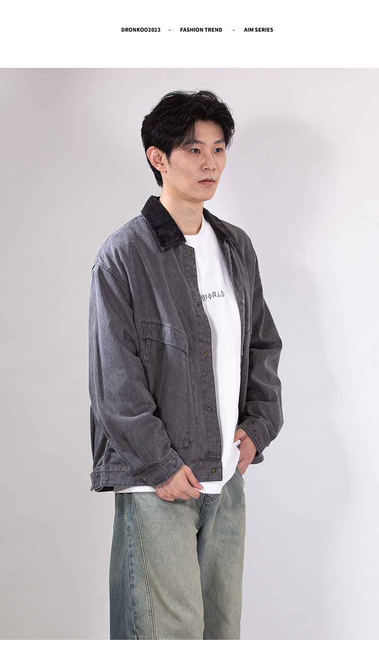 DRONKOO 2025 翻领灯芯绒撞领斜口袋巴恩风微阔中厚夹克