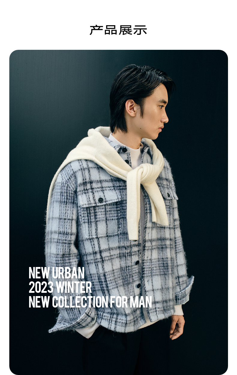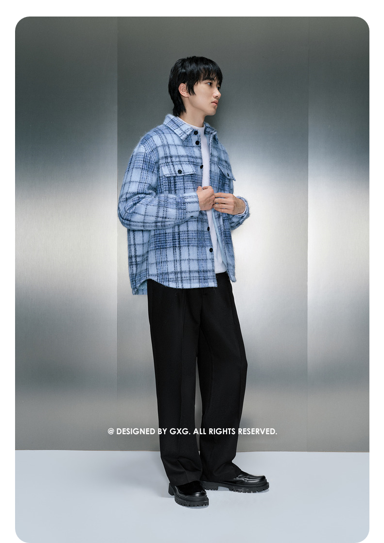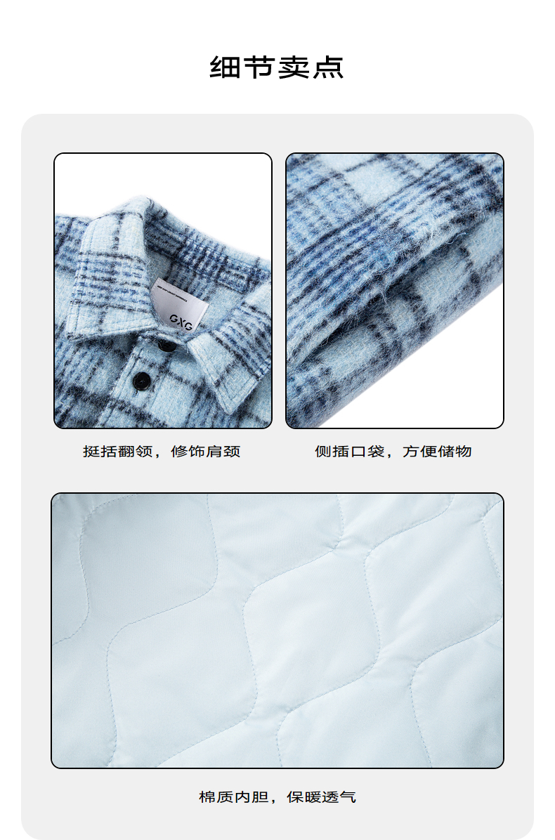 GXG男装 蓝格纹清新简约短大衣 冬季热卖气质大衣GEX10626984