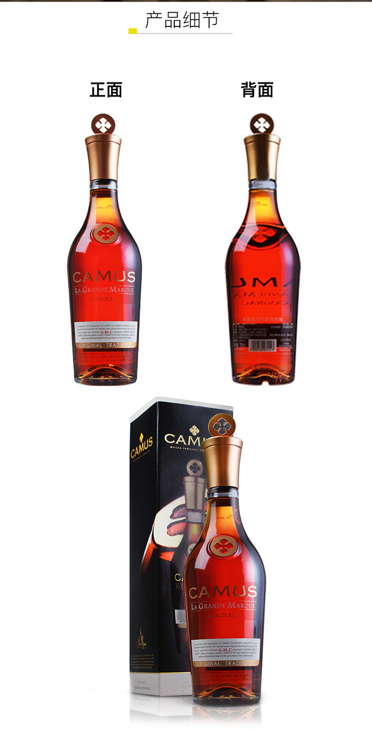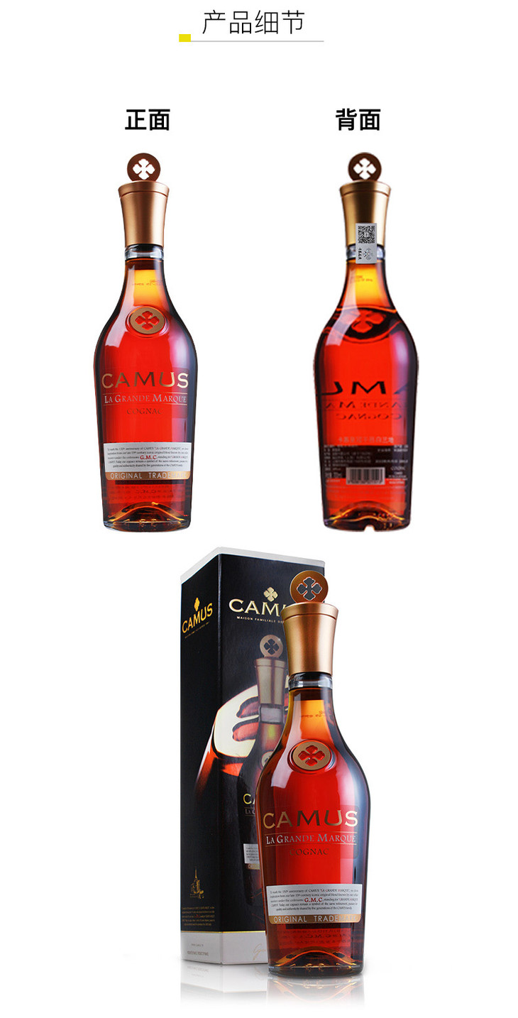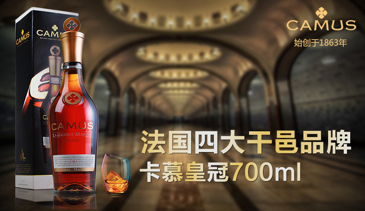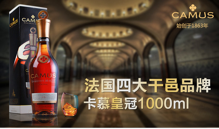 法国进口卡慕皇冠金花干邑白兰地700ml*1瓶/2瓶