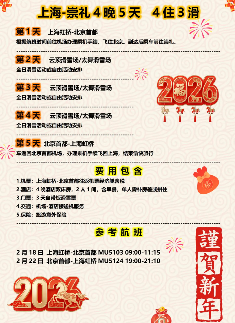 1.机票:上海虹桥-北京首都往返机票含税
