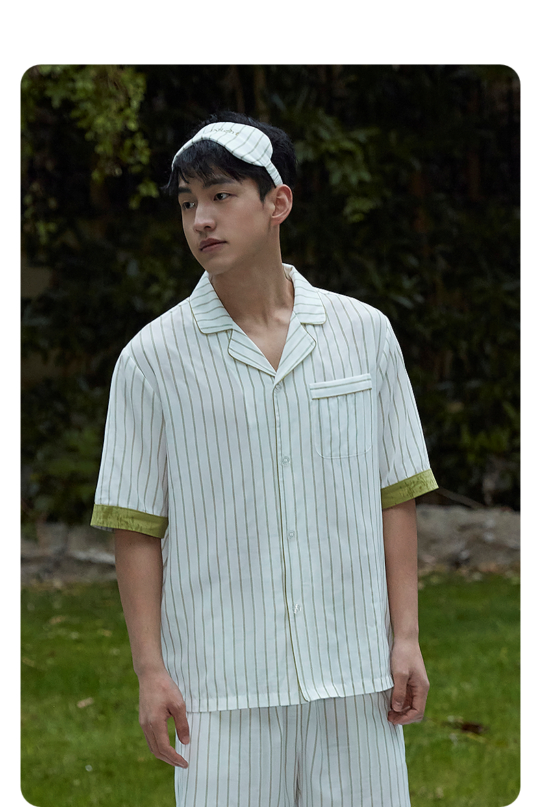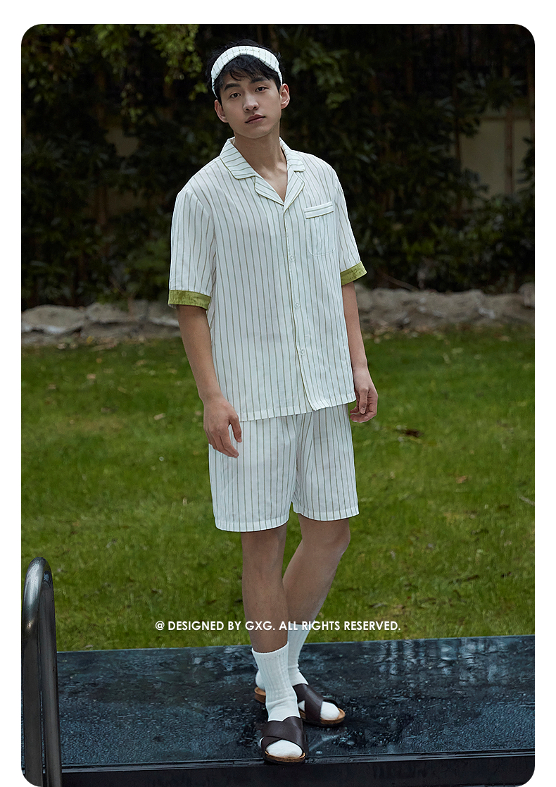 GXG男士家居服 清新条纹短袖睡衣套装男 25年春夏热卖