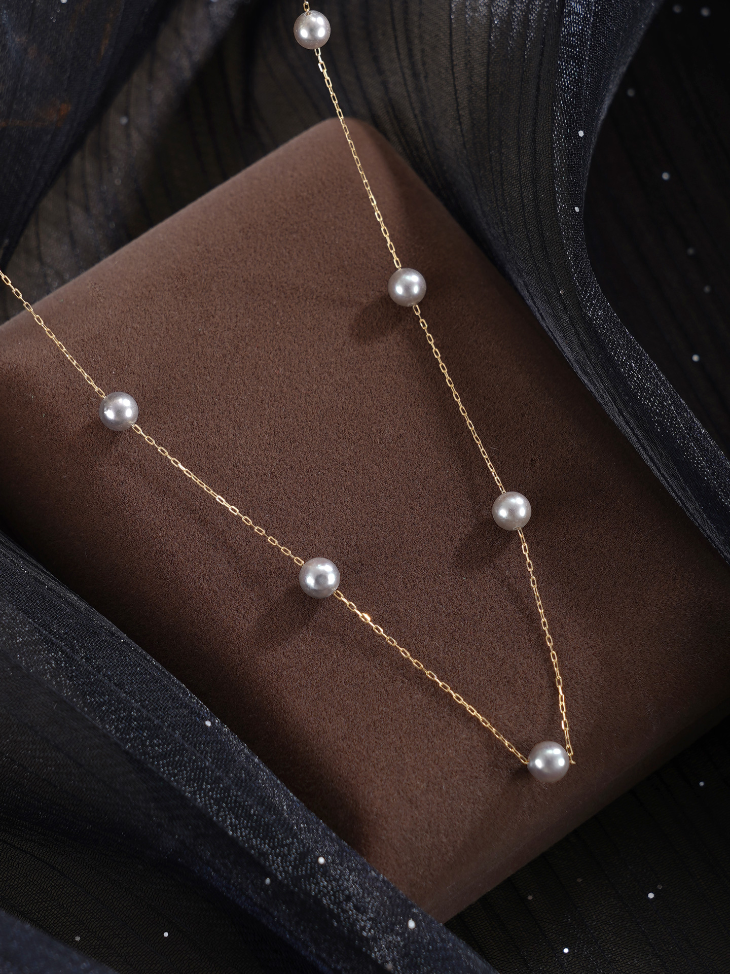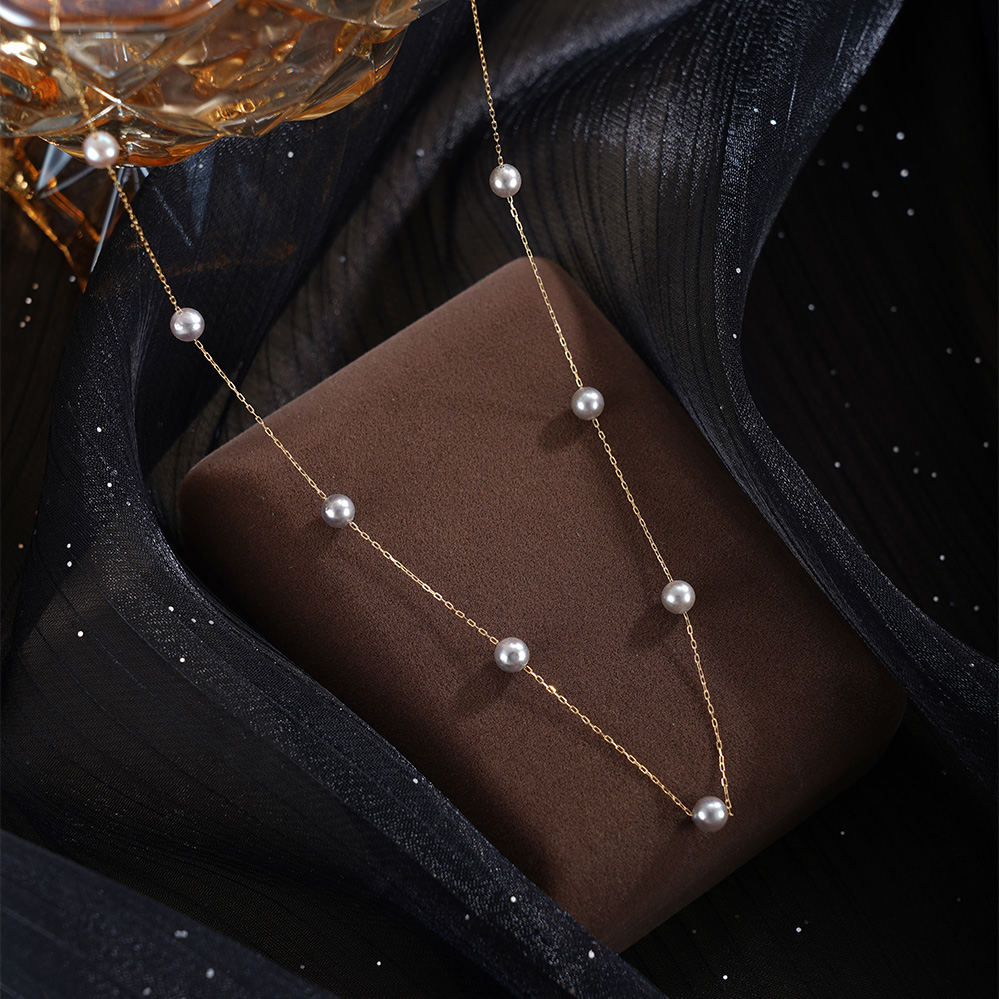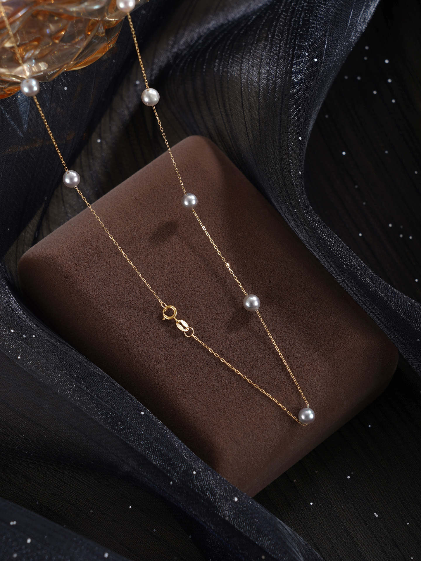 子佩集【星河之恋】G18K珍珠惜王妃项链【MLKJXL004】4.5mm珠偏灰镀金多珠2601
