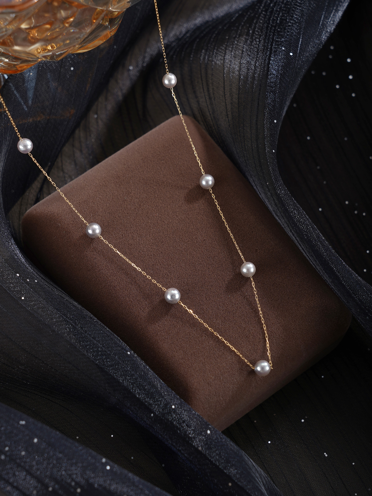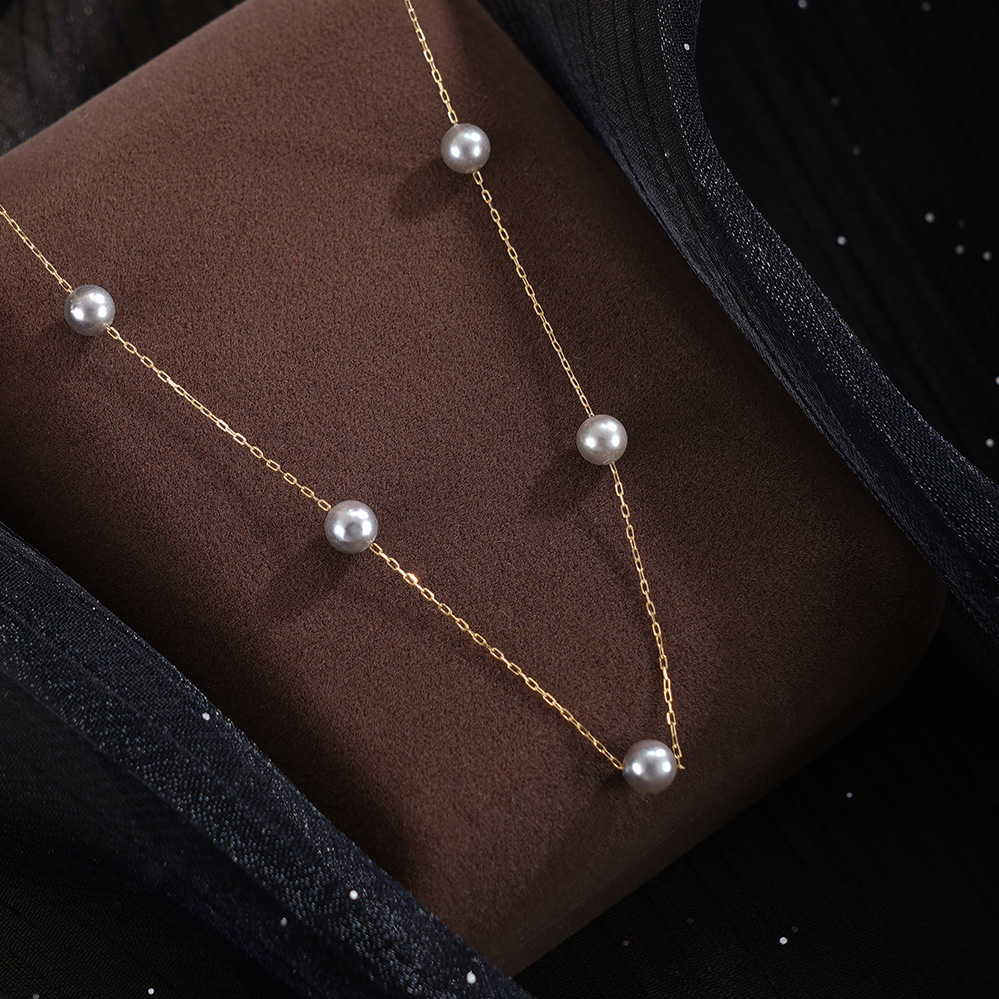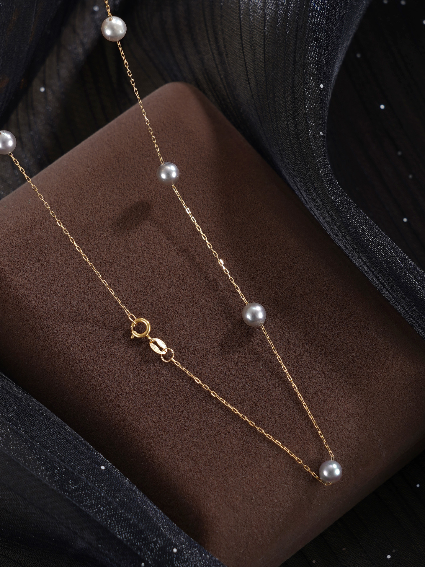 子佩集【星河之恋】G18K珍珠惜王妃项链【MLKJXL004】4.5mm珠偏灰镀金多珠2601