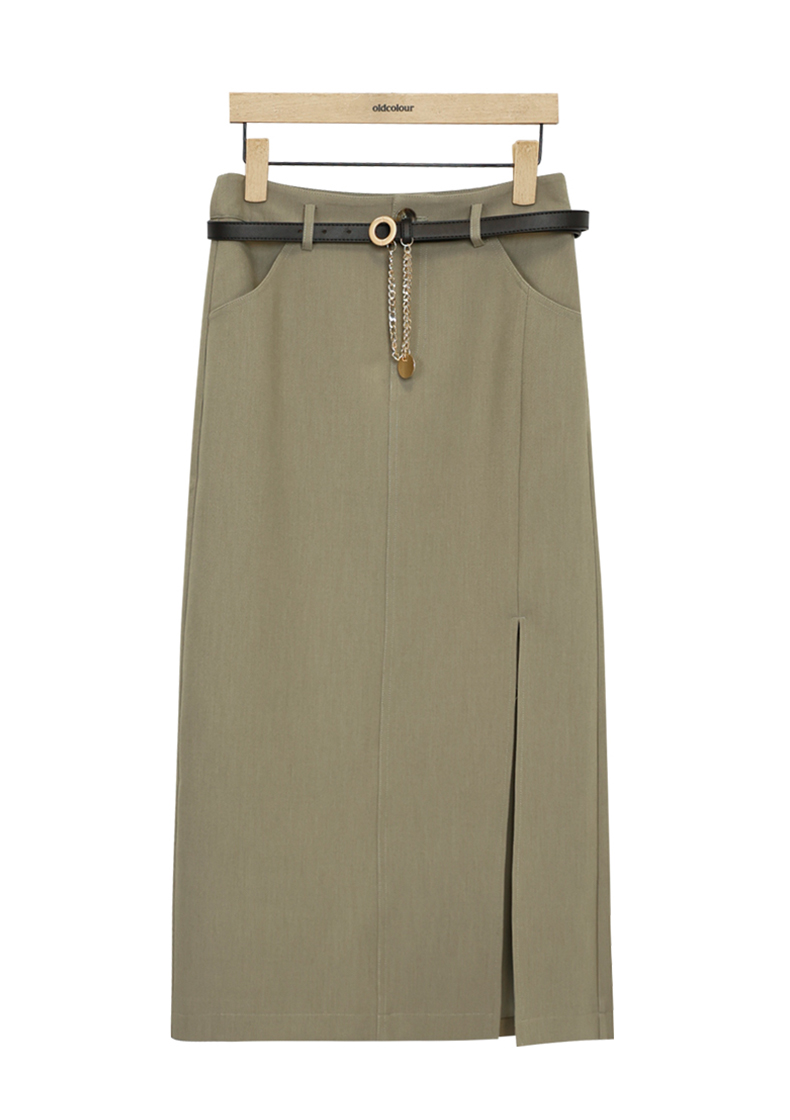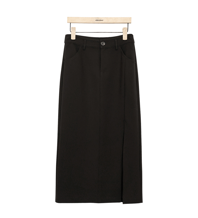 oldcolour复古半身裙春季新款高腰直筒开叉高级西装裙女P11063141