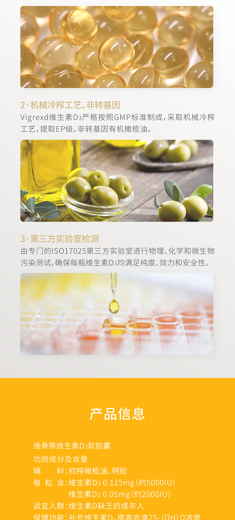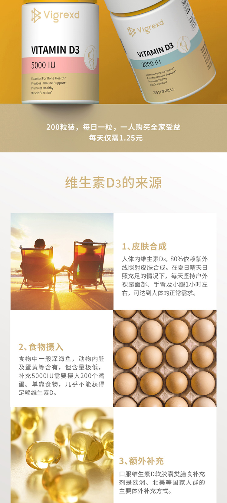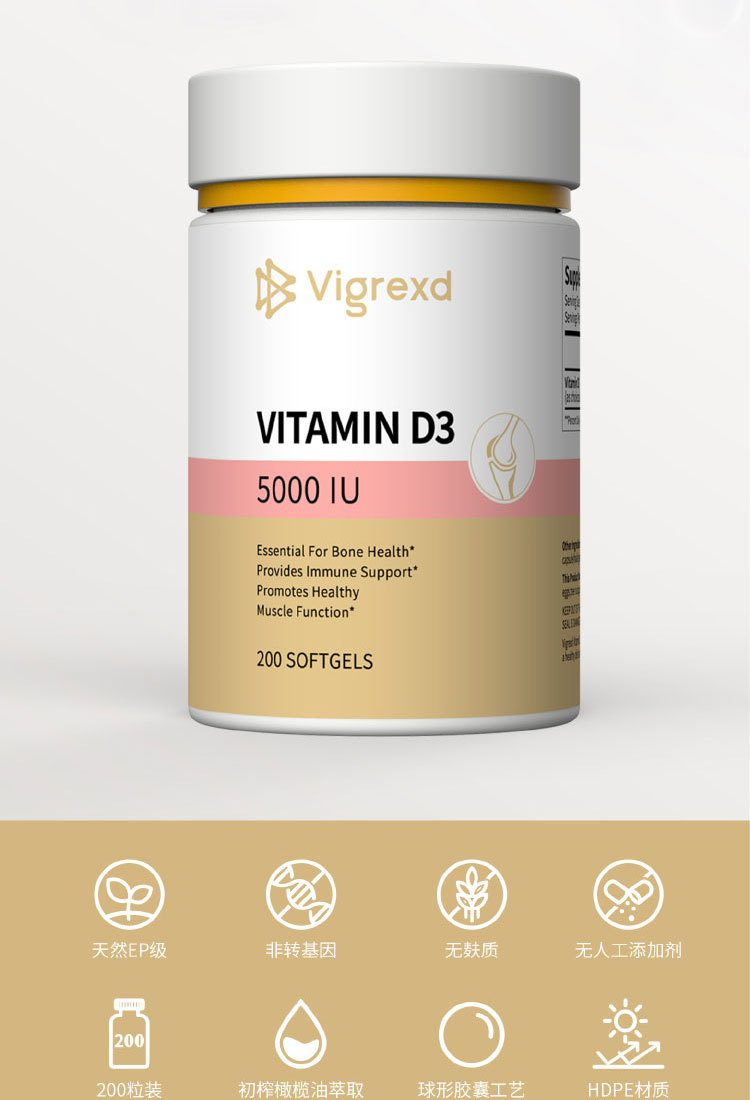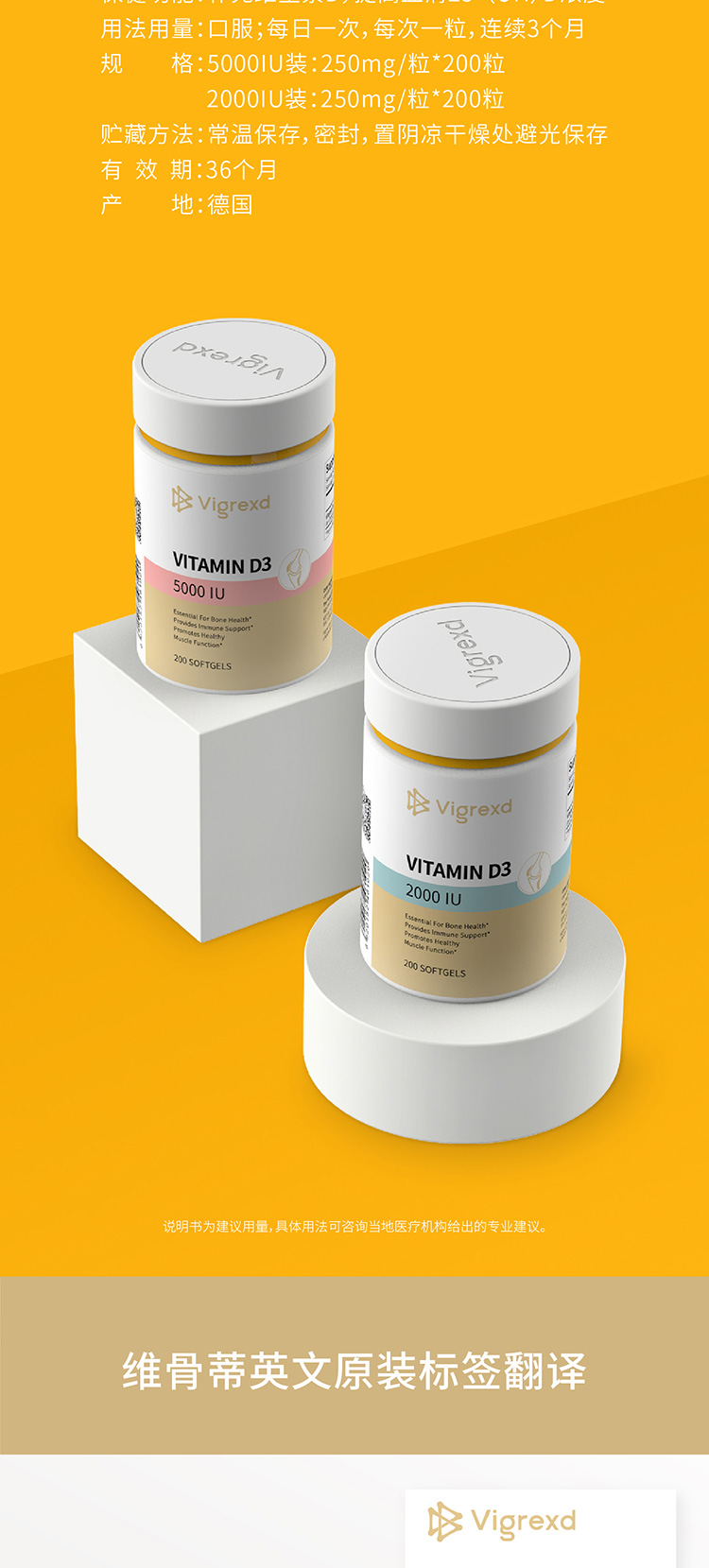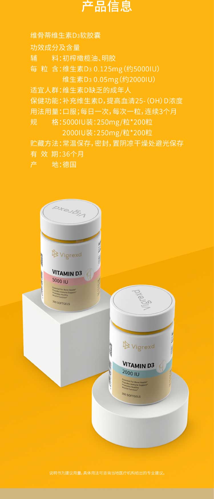 【2瓶装】德国进口VIGREXD维骨蒂 成年维生素D3 5000IU软胶囊200粒