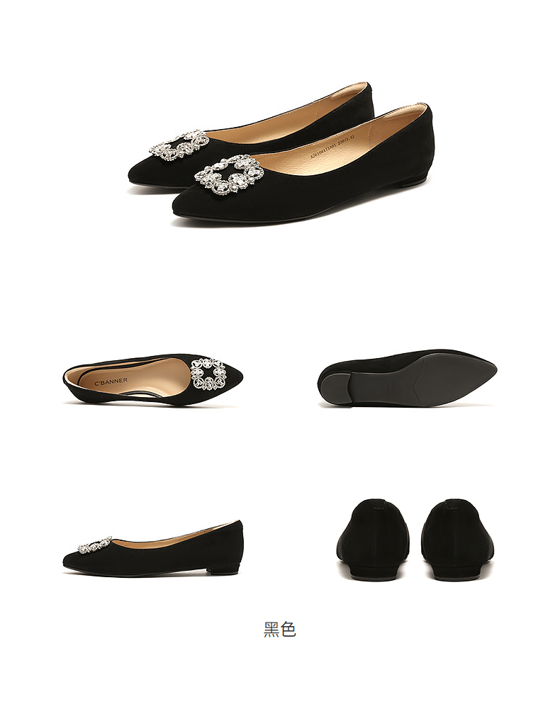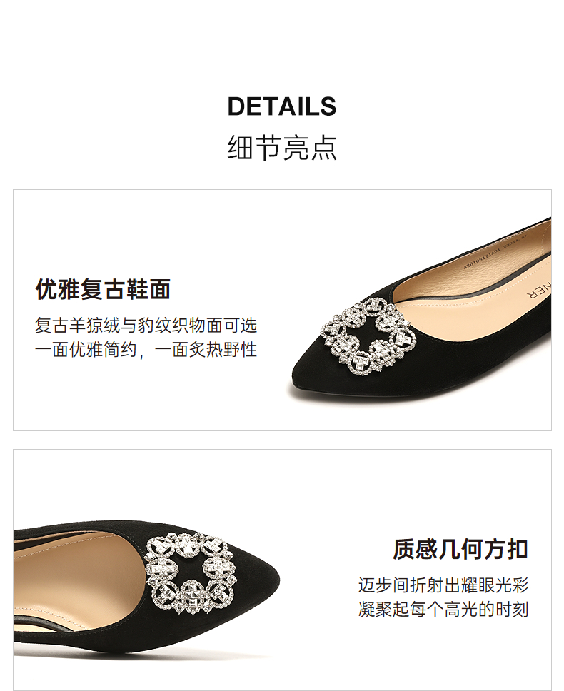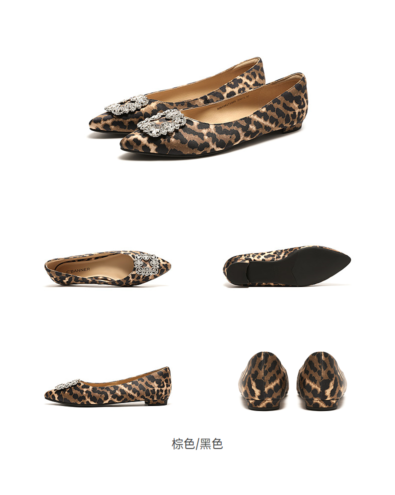 【上新】千百度复古水钻方扣低跟豹纹浅口单鞋女2026春季新款晚晚风平底鞋A26108171