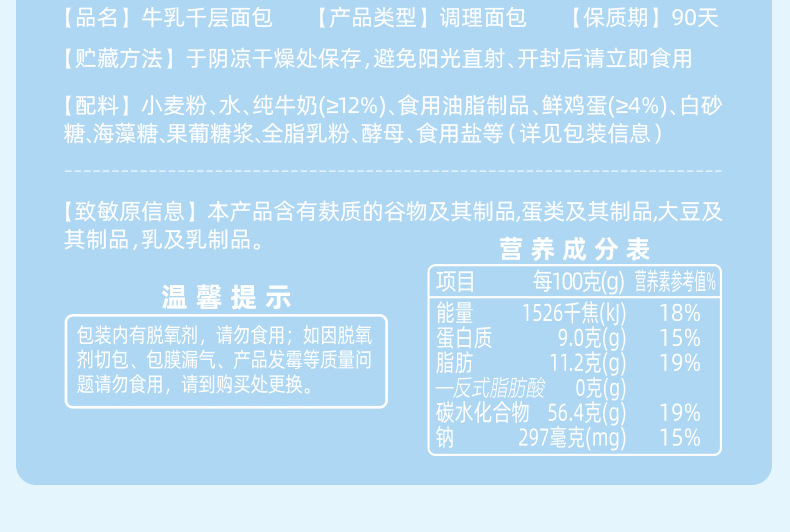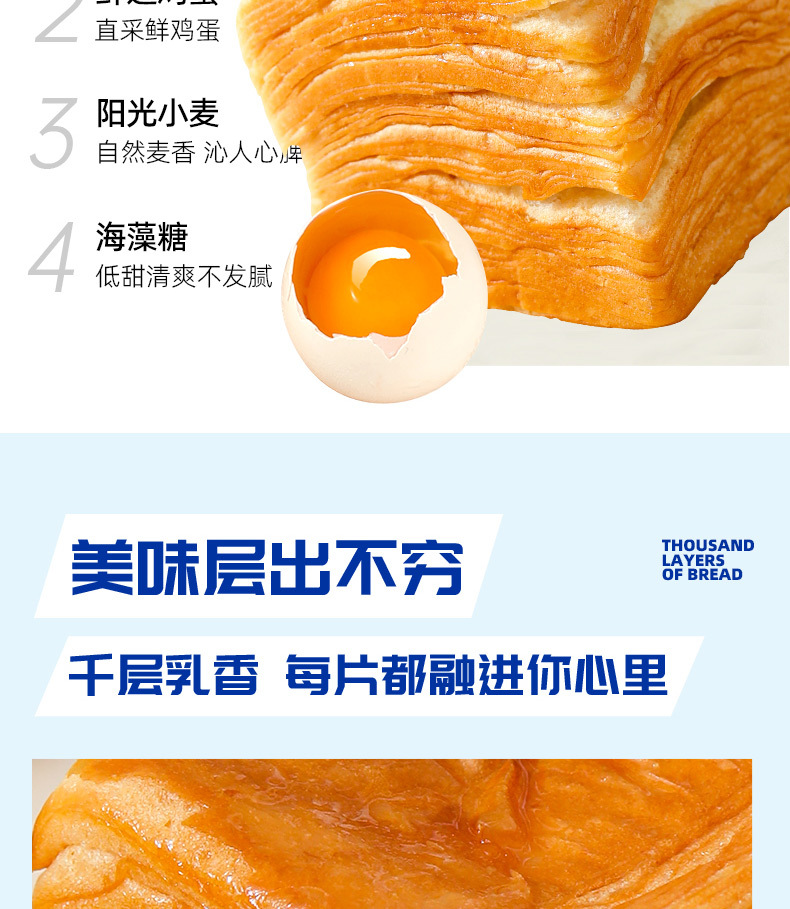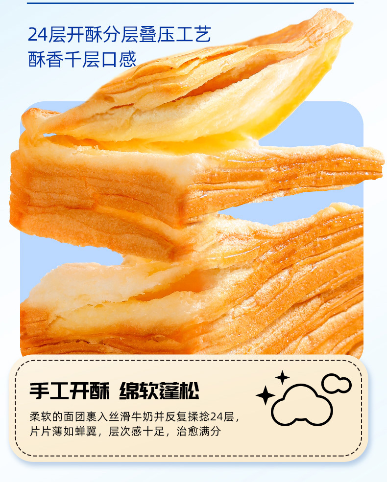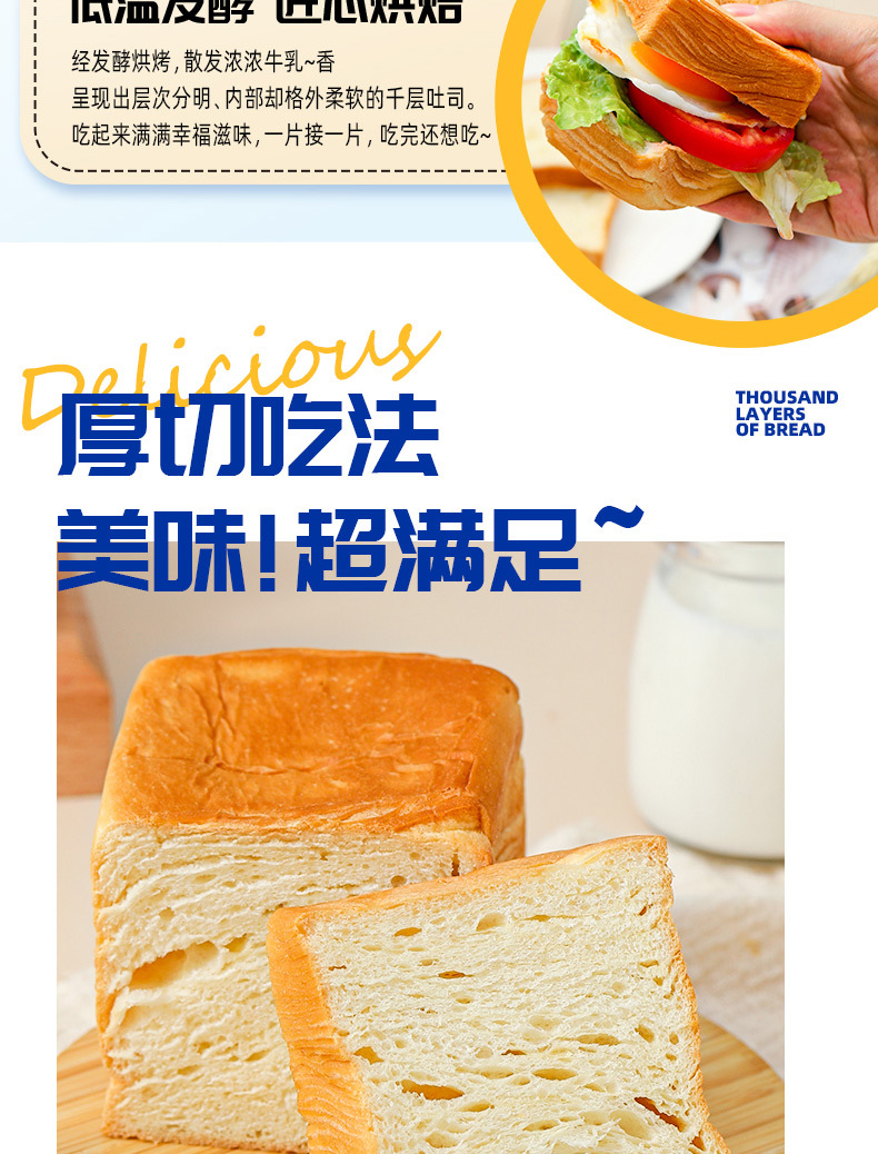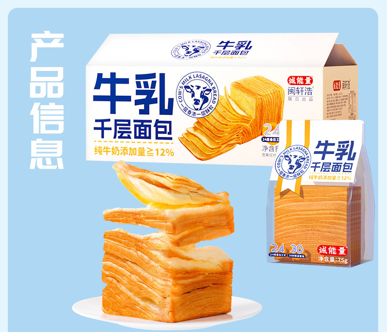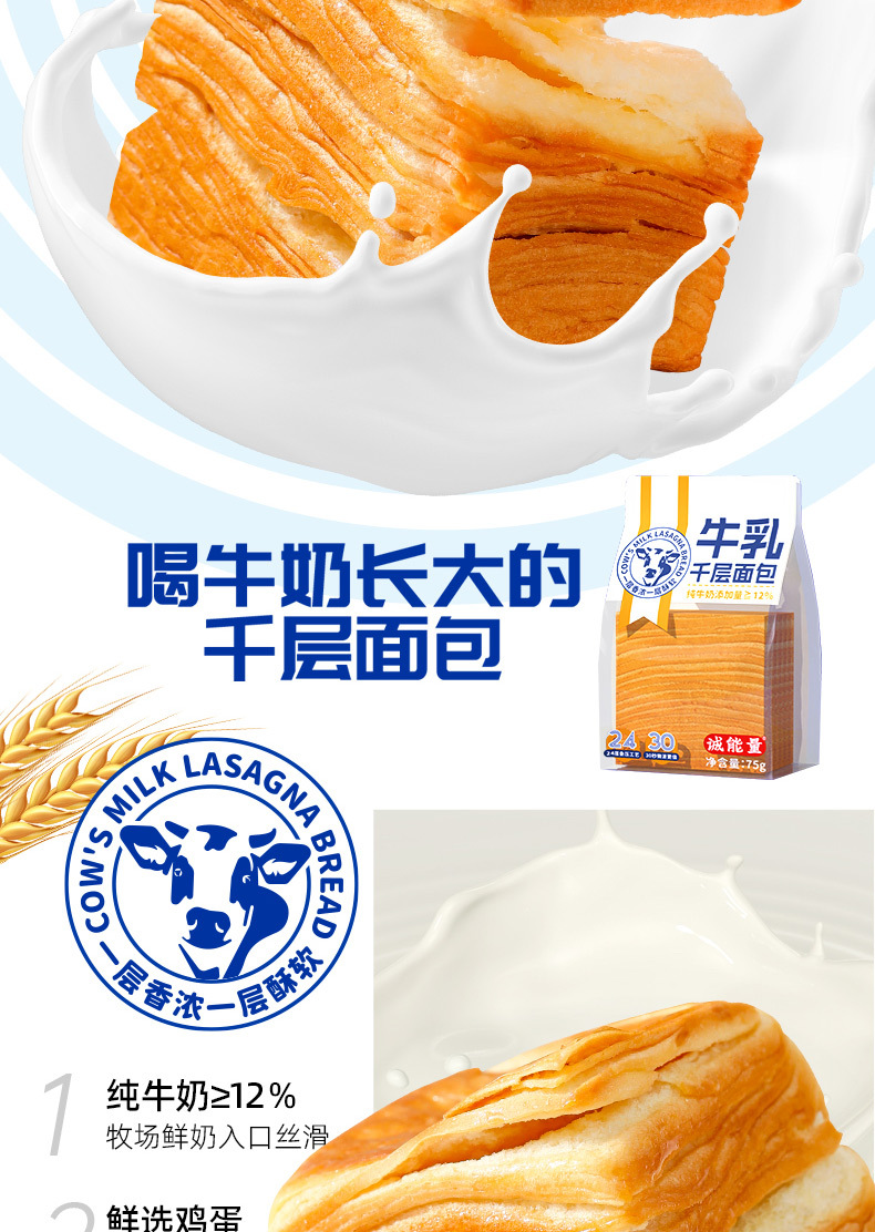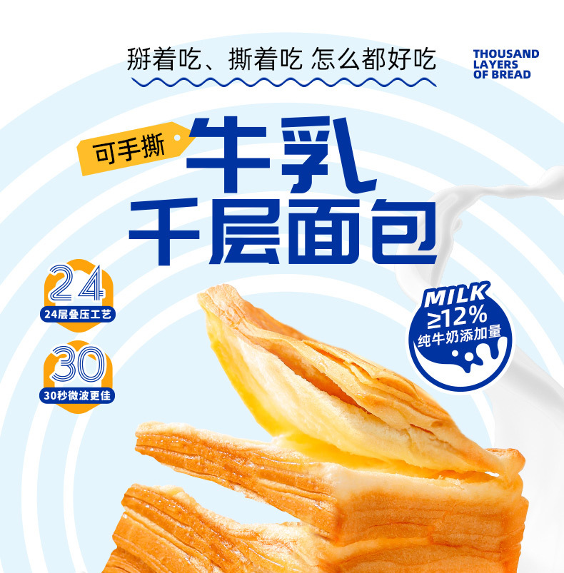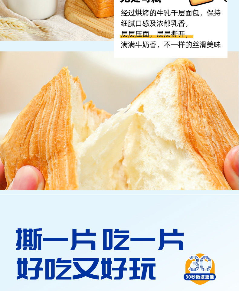 自营(泰利嘉)- 网红零食牛乳千层手撕面包早餐零食吐司小面包独立包装 75克牛乳千层面包*6包*2盒