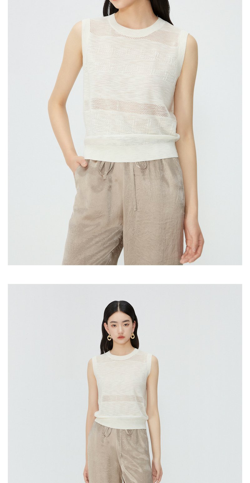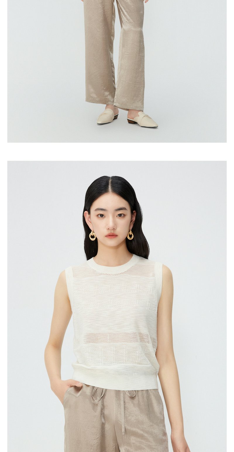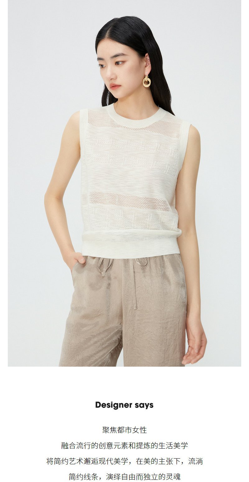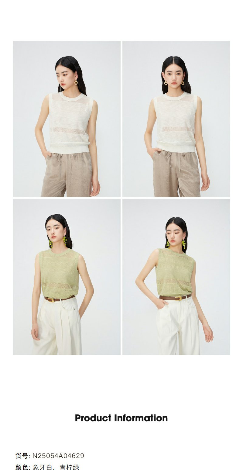 NEELLY纳俪商场同款夏季新款无袖套头针织衫女镂空设计感圆领上衣N25054A04629