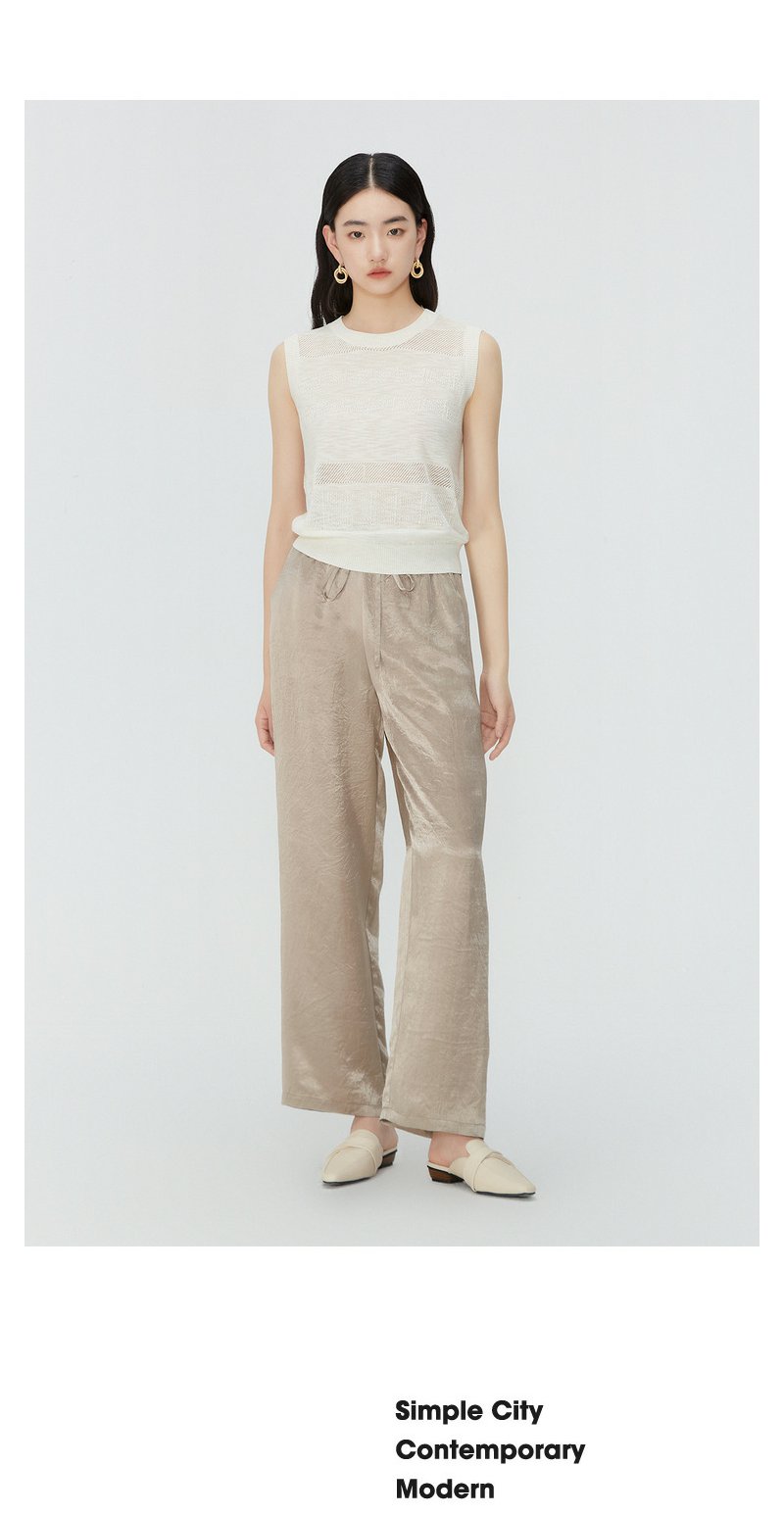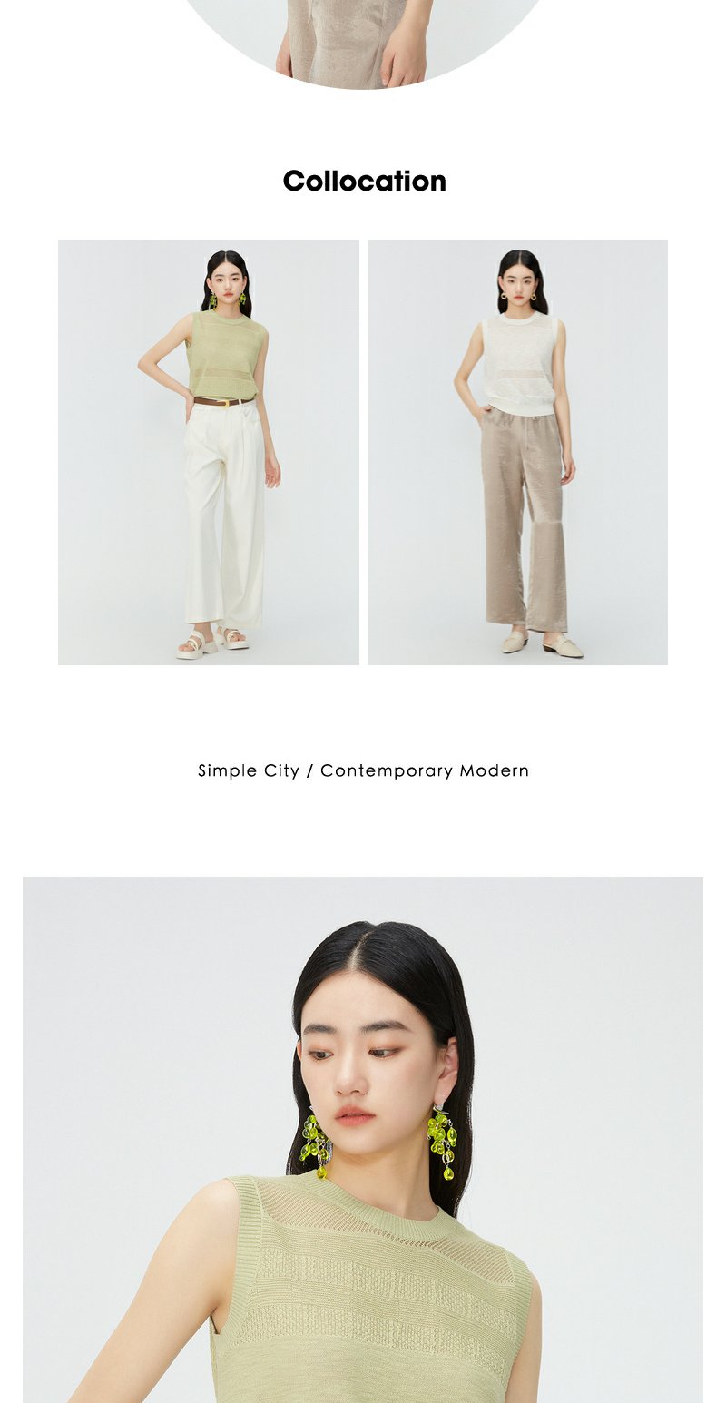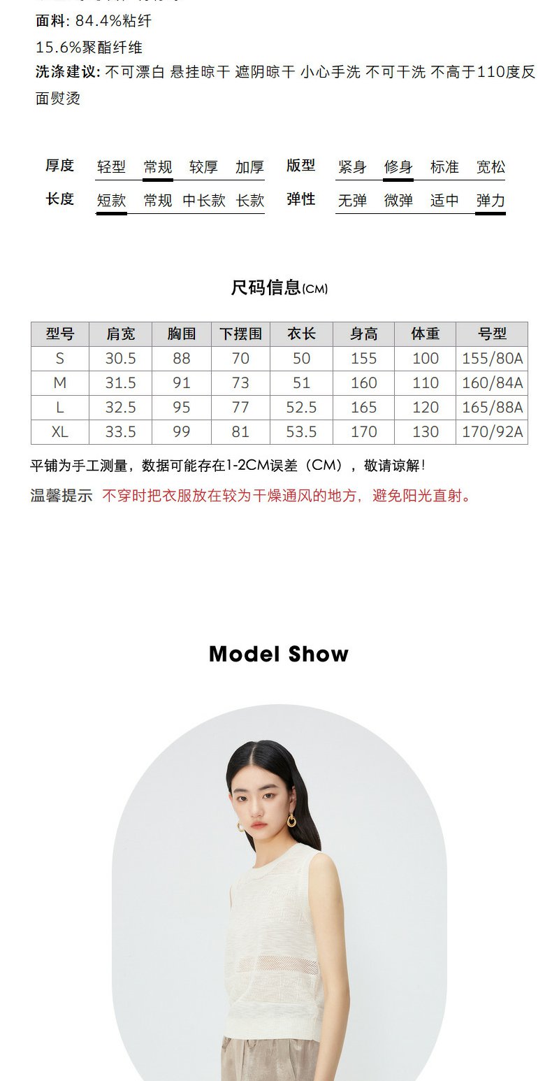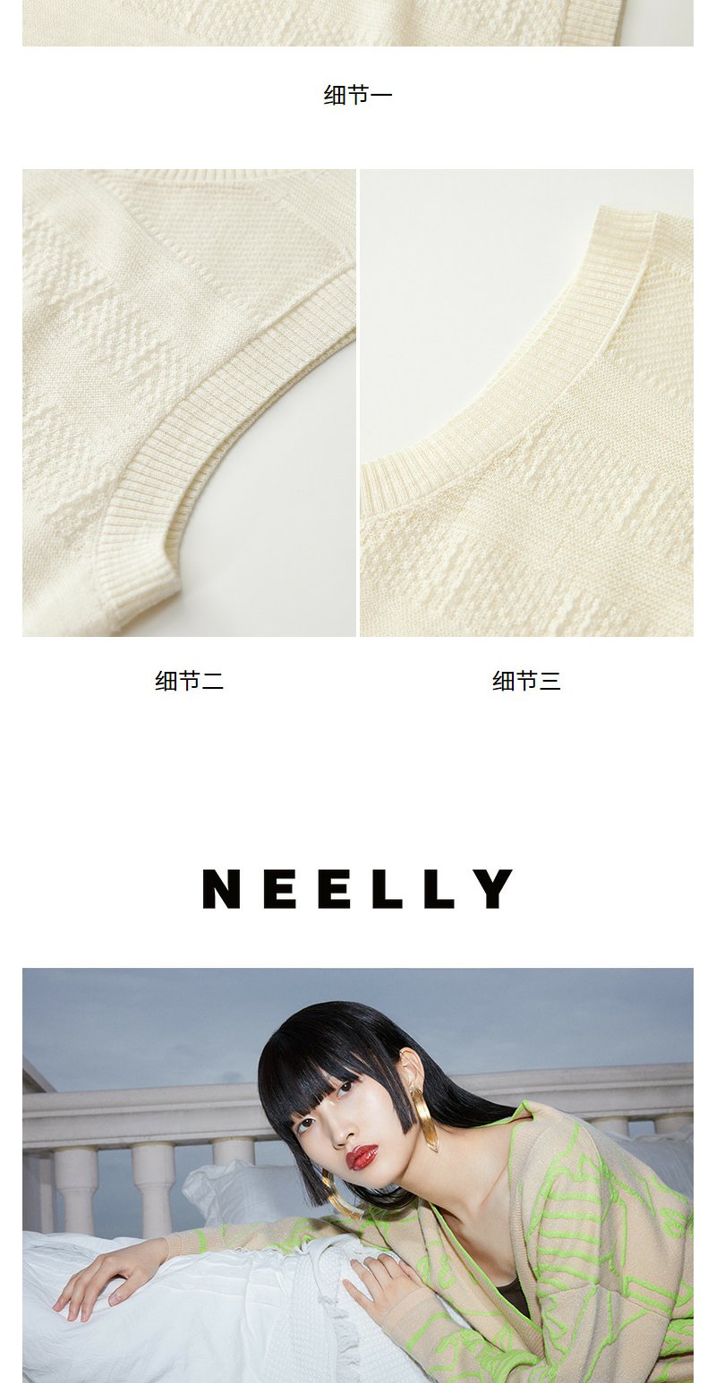 NEELLY纳俪商场同款夏季新款无袖套头针织衫女镂空设计感圆领上衣N25054A04629