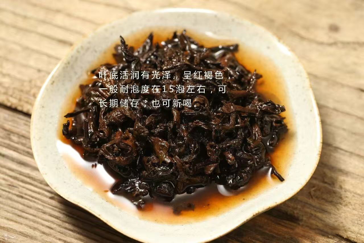 叶底活润有光泽,呈红褐色,一般耐泡度在15泡左右,可长期储存,也可新喝。
