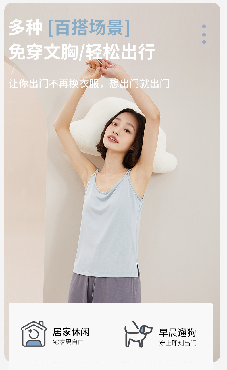 【爆款润肤冰爽衣,可外穿的家居服】奥薇姿2023夏新款女士可外穿双肩吊带润肤冰爽内搭带胸垫背心