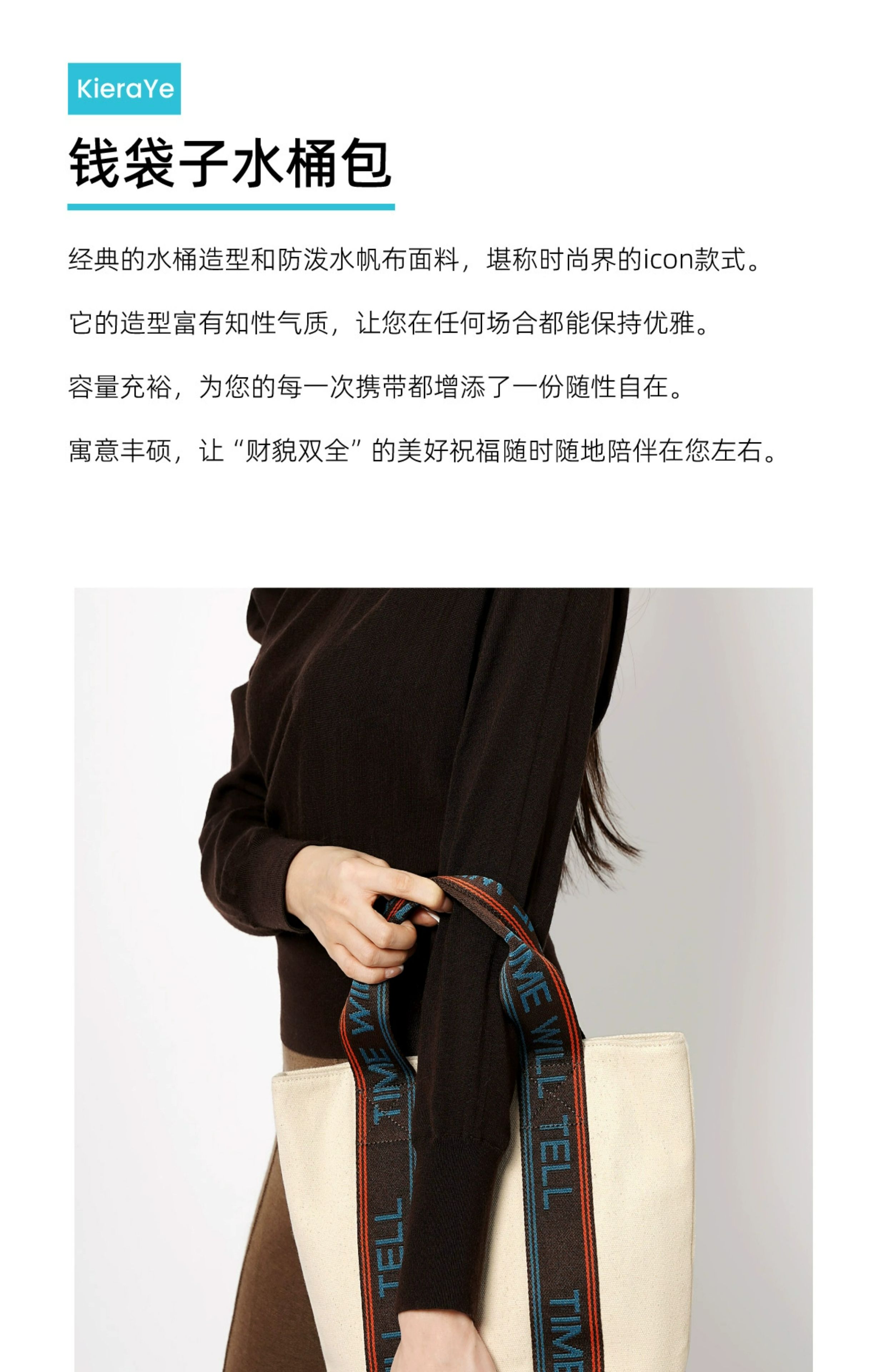 趁早Kieraye【钱袋子水桶包】大容量菜篮子包宽肩带通勤斜挎包托特包
