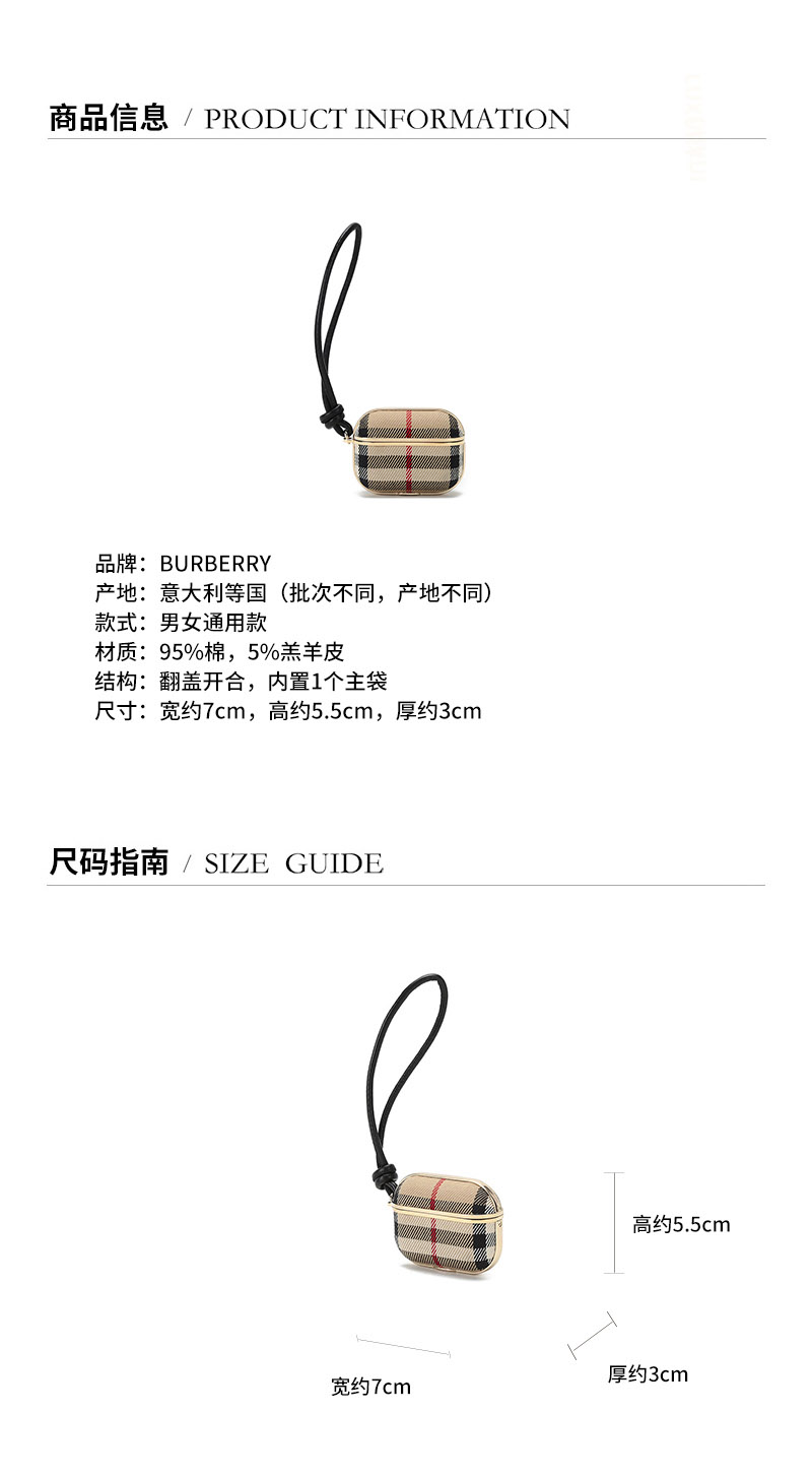 【国内现货】BURBERRY/博柏利 2021款 男女通用款织物/配皮AirPods Pro保护套耳机收纳盒/挂饰 80388451