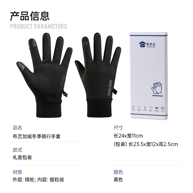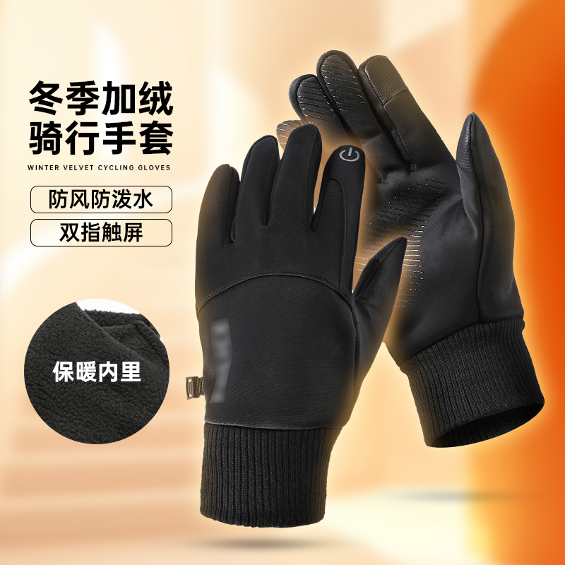 【布艺加绒冬季骑行手套】冬季通勤训练手套 加绒加厚骑行手套